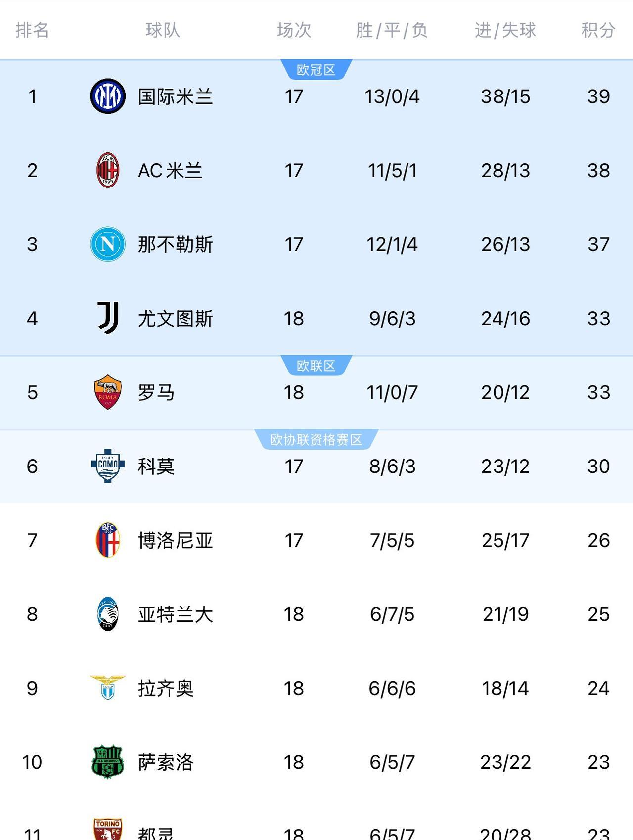 争冠集团逐渐形成!意甲第十八轮比赛全部结束,其中积分榜排名前三位的国际米兰,AC米兰和那不勒斯纷纷取胜,而身后的罗马和尤文图斯则没有全取三分。 本轮比赛的结果,让之前一直焦灼的积分榜稍稍明朗了一些,国际米兰,AC米兰和那不勒斯已经和第四名至少拉开了4分,而且还都少赛一场,逐渐形成了争冠的第一集团,而罗马,尤文图斯,科莫形成了争四的第二集团。 对于国米来说,本来这个赛季就是过渡赛季,只要能取得前四就算完成任务,目前少赛一场领先第五名6分的局面,对于齐沃和球员们减轻压力方面非常有利。既可以让齐沃有空间去实验自己新的想法,球员们也可以放开手脚去贯彻齐沃的战术理念,也算是提前为下个赛季未雨绸缪了! #国际米兰# #国米# #意甲联赛# #意甲分析# #意甲排名# #意甲战报# #意甲联赛格局# #意甲争冠# #意甲传统# #意甲豪门竞争#