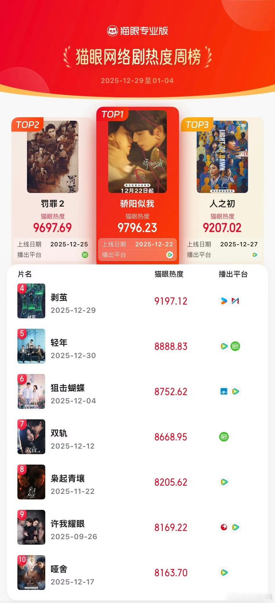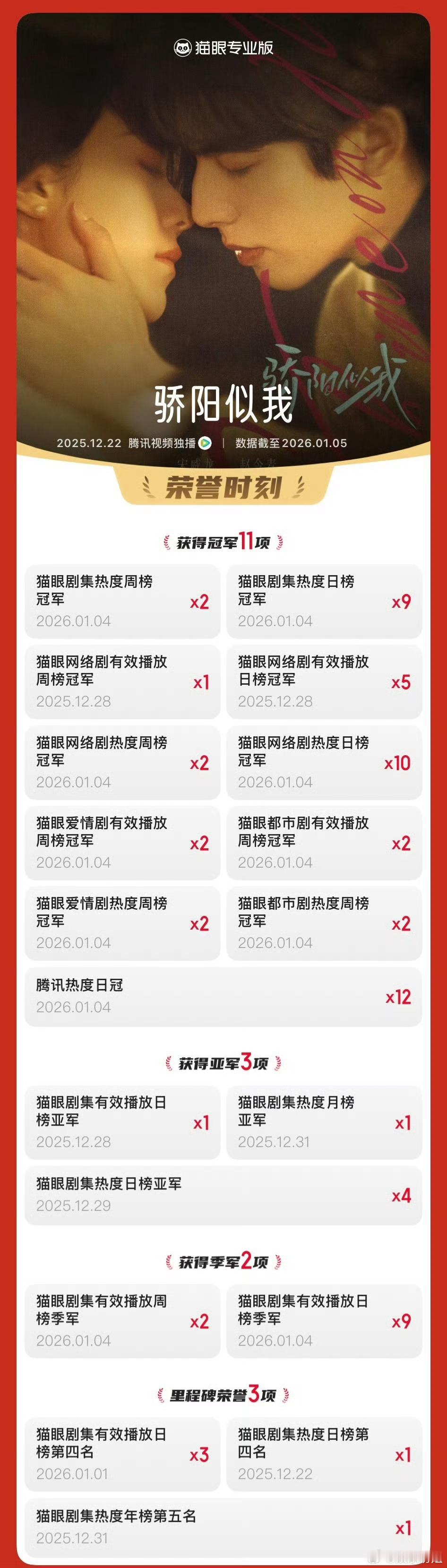 骄阳似我播放量 宋威龙赵今麦领衔主演剧集《骄阳似我》已累计10次登顶网络剧热度榜。截至目前,累计有效播放量已超5.25亿。2025微博之夜爆款创作大赛