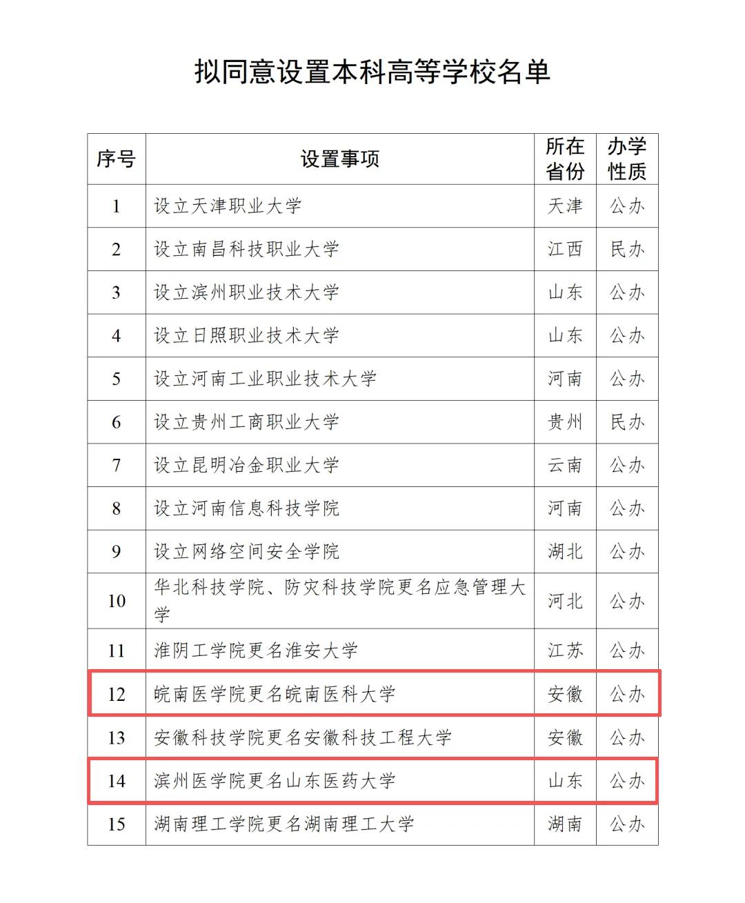 教育部1月4日公示,拟同意皖南医学院、滨州医学院分别更名为皖南医科大学、山东医药大学。此举是优化高等医学教育布局、服务区域发展的重要举措,有助于提升两校办学层次与社会影响力,标志着其向教学研究型大学转型。更名后需继续强化内涵建设,切实提升医学人才培养质量。