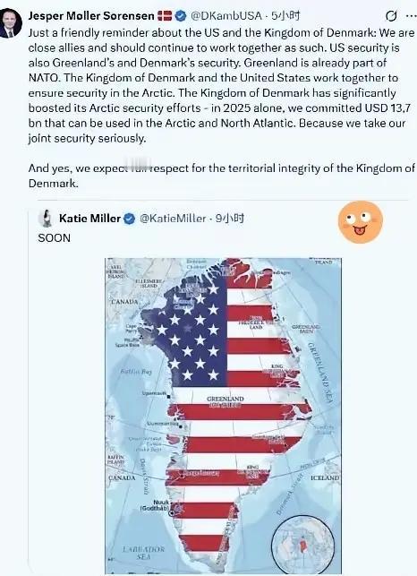 “美国需要,必须得到格陵兰岛”——特朗普这句直白的宣言,在美军突袭委内瑞拉后,变成了赤裸裸的霸权预告。当地时间1月3日美军绑架马杜罗夫妇仅数小时,白宫高级助手的妻子凯蒂·米勒就晒出美国国旗覆盖的格陵兰岛地图,配文“SOON”,这波“地图开疆”把北约盟友丹麦惊出一身冷汗。 丹麦大使火速留言“求尊重”,首相弗雷泽里克森更是硬气表态:“占领格陵兰岛是无稽之谈”,可这话在特朗普的“懂罗主义”面前格外苍白。要知道,美国对这座岛的觊觎早有预谋:2025年将其防务划归本土北方司令部,任命专属特使,甚至派人秘密渗透离间格陵兰与丹麦关系 。毕竟,这里藏着3800万吨稀土、310亿桶石油,还是北极航道的咽喉要冲,战略价值堪比“北极明珠” 。 有趣的是,丹麦一边喊着“北约盟友应相煎何太急”,一边强调“受北约集体安全保护”,却忘了特朗普的逻辑:拳头硬才是真理。西班牙媒体戳破本质——这就是“掠夺外交”,连丹麦情报报告都把美国列为潜在威胁。格陵兰岛总理那句“我们不属于任何人”,更是给霸权一记耳光,欧盟也站队支持丹麦捍卫领土完整。 从委内瑞拉到格陵兰岛,美国的霸权剧本从不管对手是反美政权还是亲密盟友。所谓“北约保护”,不过是霸权的遮羞布,当领头羊露出獠牙,盟友也能变成猎物。在国际法沦为“弱者枷锁”的现实里,丹麦的焦虑恰恰证明:霸权面前,没有永远的盟友,只有永远的掠夺目标。