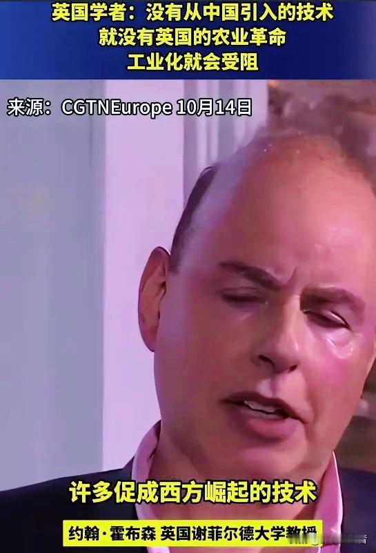 终于有西方的学者勇敢说真话了。 英国谢菲尔德大学教授约翰·霍布森在电视节目中说:“没有从中国引进的技术,就没有英国的农业革命,工业化就会受阻,西方人拿来了却说是西方人发明的。” 其实霍布森自己在《西方文明的东方起源》里早就写过,欧洲发展的每个关键转折点,几乎都靠吸收东方发明,尤其是中国技术。 就说英国工业革命的核心 —— 水力纺纱机,1769 年阿克莱发明的这东西,被吹成 “工业革命的标志”,可实际上,中国元代就有了 “水转大纺车”,32 个纺锤,日产量 100 斤,比珍妮纺纱机最初的 8 比纱锭效率高多了! 这事儿根本不是孤例,霍布森在书里扒的料多着呢。元代的水转大纺车早就通过丝绸之路传到了欧洲,14世纪的意大利文献里就有类似纺纱机械的记载,只是欧洲人当时没能力改进。 等到18世纪,阿克莱不过是在这基础上做了点小改动,换了个金属零件,就成了西方教科书里的“发明者”。 这种操作在西方科技史上一抓一大把,说白了就是捡了现成的技术还装原创。 英国农业革命更是离不开中国的技术输血。欧洲人过去种地靠人力牛耕,效率低得可怜,直到中国的曲辕犁和秧马传过去,才彻底改变了局面。 曲辕犁能灵活调整深耕浅耕,适应不同土地,秧马让插秧效率提高了三倍,这俩宝贝直接让欧洲的粮食产量翻了番。 还有中国的水车、龙骨翻车,帮欧洲解决了农田灌溉的大问题,没有这些技术打下的农业基础,英国根本没多余的粮食养活工厂里的工人,工业革命就是空谈。 更别说那些改变世界的关键发明了,印刷术、火药、指南针,哪一个不是从中国传到欧洲的? 欧洲人用印刷术普及了知识,用火药打破了骑士阶层的统治,用指南针开启了大航海时代,这些都是欧洲崛起的核心动力。 可西方的历史书里,要么轻描淡写提一句“来自东方”,要么干脆把这些发明的功劳归到自己人头上。 霍布森说的一点没错,西方的发展从来不是什么“天赋异禀”,而是站在东方,尤其是中国技术的肩膀上摘的果子。 最让人不舒服的是西方的文化霸权,他们不仅拿走了技术,还构建了一套“西方中心论”的叙事,把自己塑造成文明的创造者,把东方说成是落后的模仿者。 这种谎言骗了世界几百年,直到霍布森这样的学者站出来说真话,才慢慢撕开了口子。 其实仔细想想,中国古代的科技成就从来不止这些,天文历法、数学医学、建筑工艺,哪一样都曾领先世界,只是很多贡献都被西方的叙事掩盖了。 承认别人的贡献不是丢人的事,相反,刻意抹杀才是真正的狭隘。 霍布森的勇敢不仅是对历史的尊重,也是在提醒世界,文明的发展从来都是互相交流、互相借鉴的结果,没有哪个文明能孤立地崛起。 各位读者你们怎么看?欢迎在评论区讨论。 史料出处:约翰·霍布森《西方文明的东方起源》(2004年版);元代王祯《农书》卷二十《水转大纺车》记载;李约瑟《中国科学技术史》第四卷《机械工程》(1965年版);《英国农业革命史》(2010年版)中关于东方农具引进的章节;央视纪录片《大国重器·科技先驱》(2022年)中国古代纺织机械专题;《自然科学史研究》2018年第3期《水转大纺车对欧洲纺织技术的影响考》。