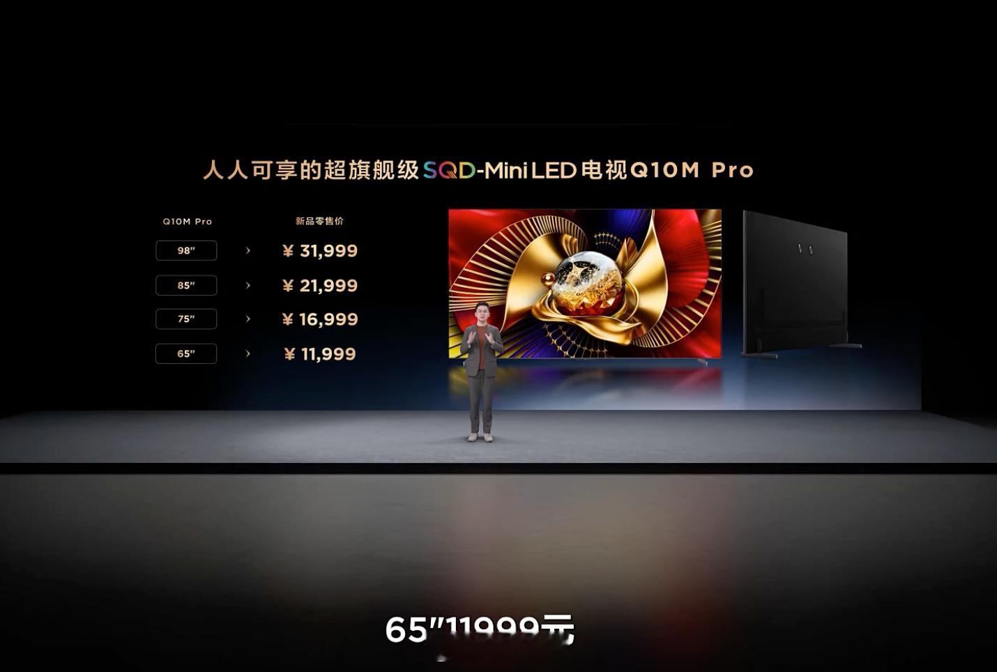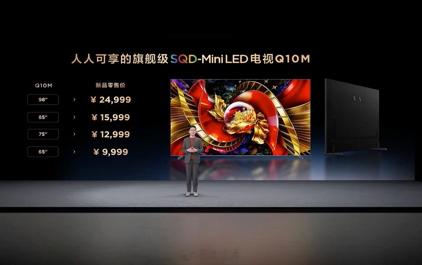 2024年TCL Mini LED电视出货量全球第一,两款SQD-Mini LED电视新品发布Q10M Pro电视100% BT.2020全局高色域至高8052个万象分区至高绚彩XDR峰值亮度8500nit4K+150Hz,300hz超高刷65英寸售价11999元75英寸售价16999元85英寸售价21999元98英寸售价31999元Q10M电视100% BT.2020全局高色域至高4302万象分区至高绚彩XDR峰值亮度6000nit4K+150Hz,300hz超高刷65英寸售价9999元75英寸售价12999元85英寸售价15999元98英寸售价24999元新机来了