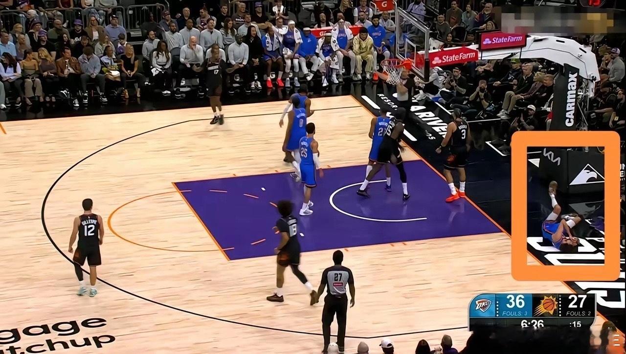 太阳恶汉狄龙-布鲁克斯真是太狠了!在今天太阳主场迎战雷霆的比赛中,当时比赛进行到了第二节的六分多钟,狄龙在一次进攻回合中迎着雷霆内线霍姆格伦的防守持球强杀篮下,最后狄龙的右肘结结实实的打到了霍姆格伦的面部,直接将霍姆格伦干翻在地,狄龙因此被裁判吹罚了一次进攻犯规。值得一提的是,裁判在观看了录像回放以后竟然没有升级狄龙的犯规。在我看来,狄龙的犯规起码是一级恶意犯规。nba布克绝杀雷霆太阳VS雷霆