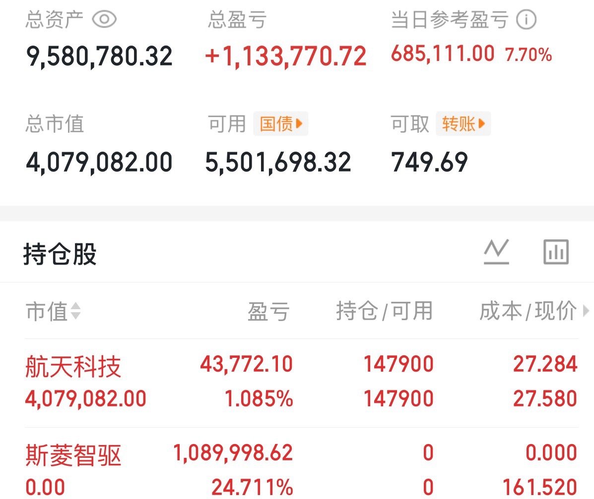 粉丝朋友们大家好,玲珑的斯菱智驱已经全部清仓了!航天科技还没有动,大家收到点赞评论666