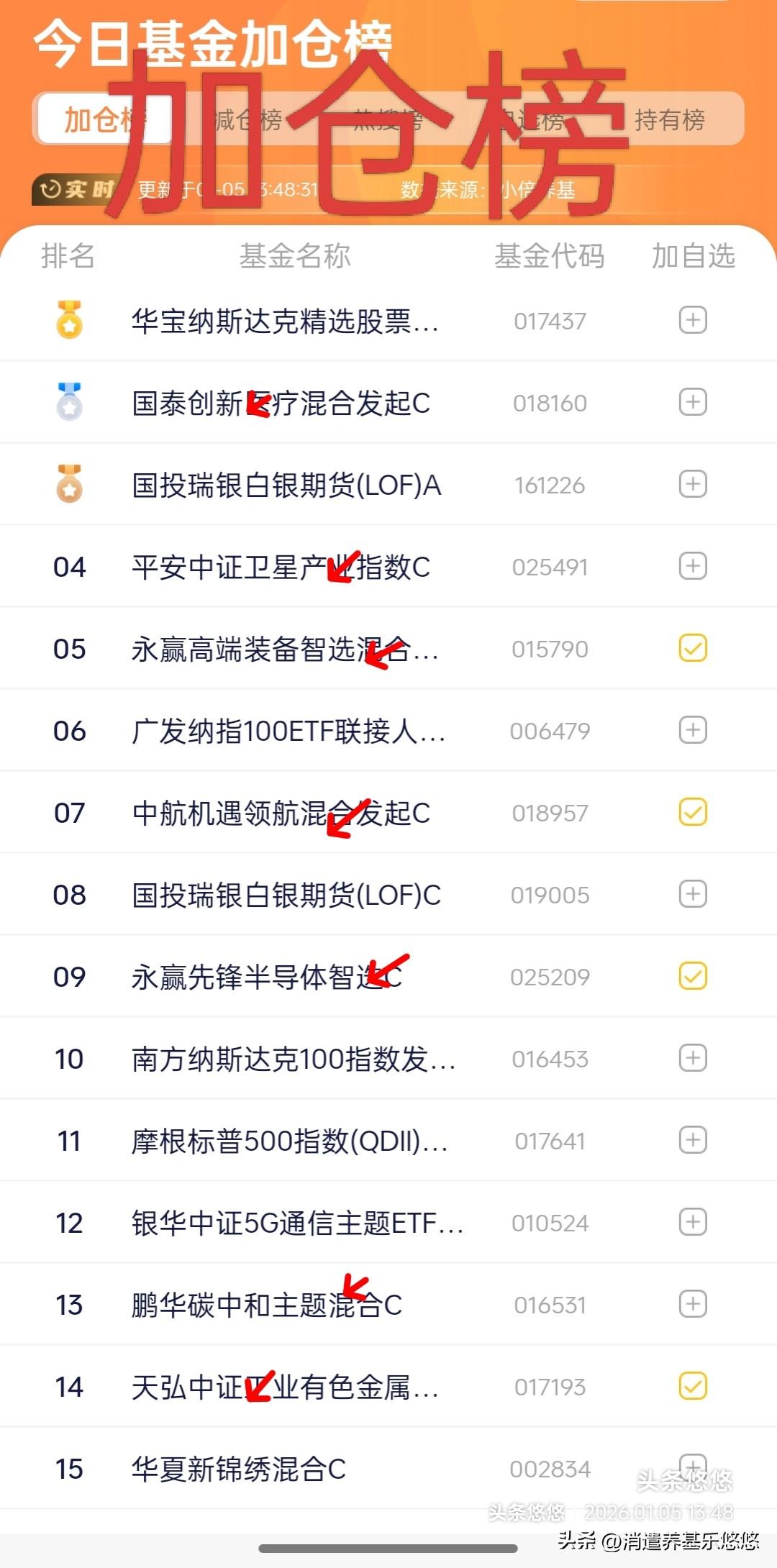 1.5日基金操作观点及加仓榜 亚太股市一片红,A股实现开门红目前看没有悬念了,今天拿下4000点,近期突破4034点不在话下,但是今天大盘这个位置就是短期小高点,需要回调休整一下,今天是12连阳,难道它能13-14-15连阳?重点板块提示如下: 恒生科技,创新药,存储芯片分别刚刚发了专题分析,去翻阅看看。 人形机器人,目前接近前期高点区域,持仓待涨,不建议开新仓。 新能源电池板块,中规中矩,持仓待涨。 有色金属板块,板块指数上涨趋势中,持仓待涨。 通信设备与cpo,高位震荡整理,上涨乏力感觉,盘中波动它跳水最快,基金估值低于板块指数,观望为主。 半导体材料设备,接近前期高点,持仓待涨分期止盈均可。 科创芯片,继续看涨,持仓待涨。 消费电子,中证数据,中证软件,上涨趋势,继续持仓待涨。 中证传媒,周末专题分析,有可能新年主线之一,本人计划今天上车,两天大涨7%,看来不给机会,再等等看。 军工板块,持仓待涨分期止盈减仓均可,不能再开新仓了。 卫星互联网通信,分期止盈减仓。 点赞转发关注投资理财不迷路。