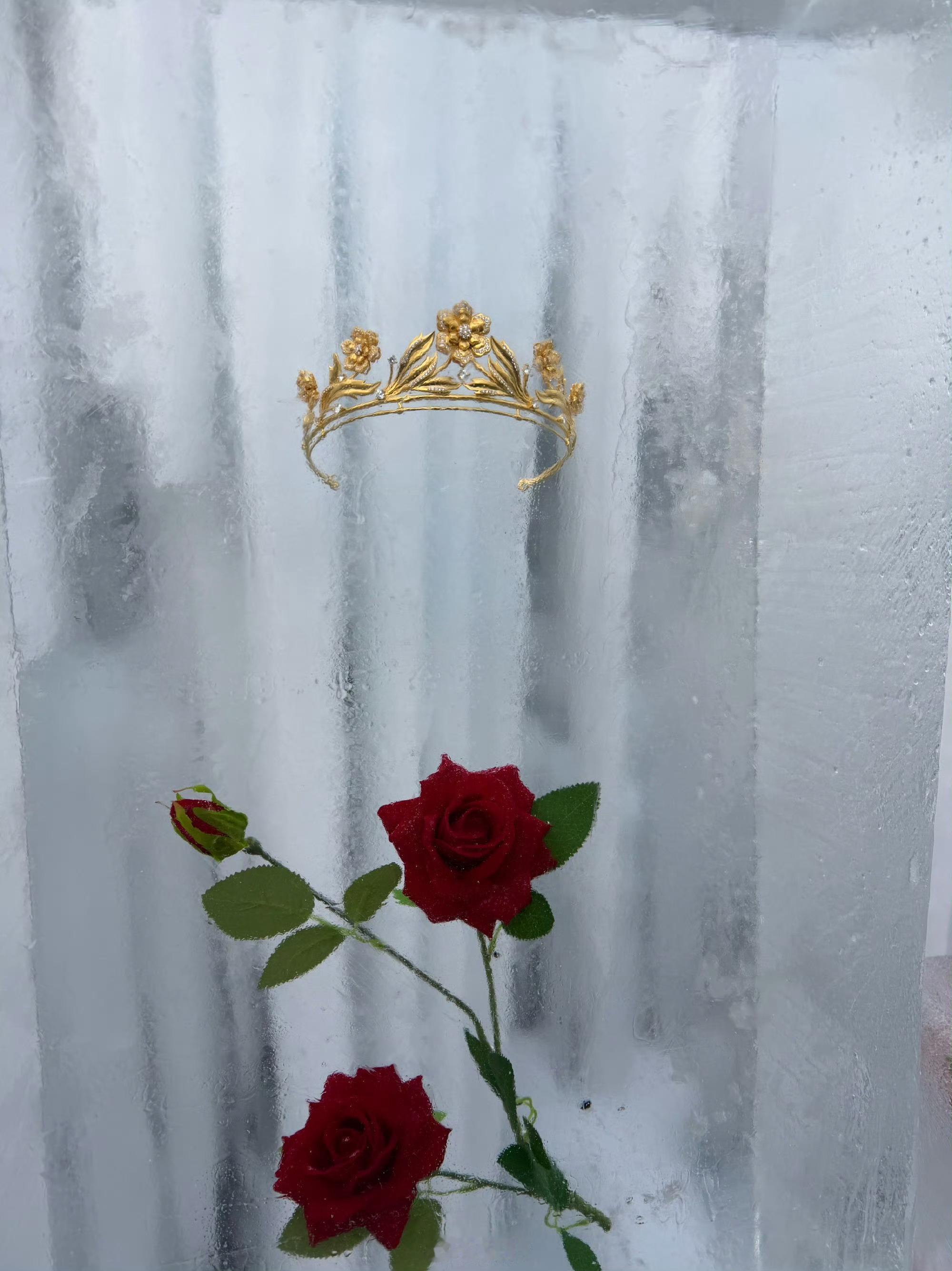 长白山冰心岛因三顶单值超百万的纯金冰封皇冠爆火,金光映雪成打卡盛景,游客冒寒排长队,景区配专业安保24小时值守,成社交平台热议焦点。