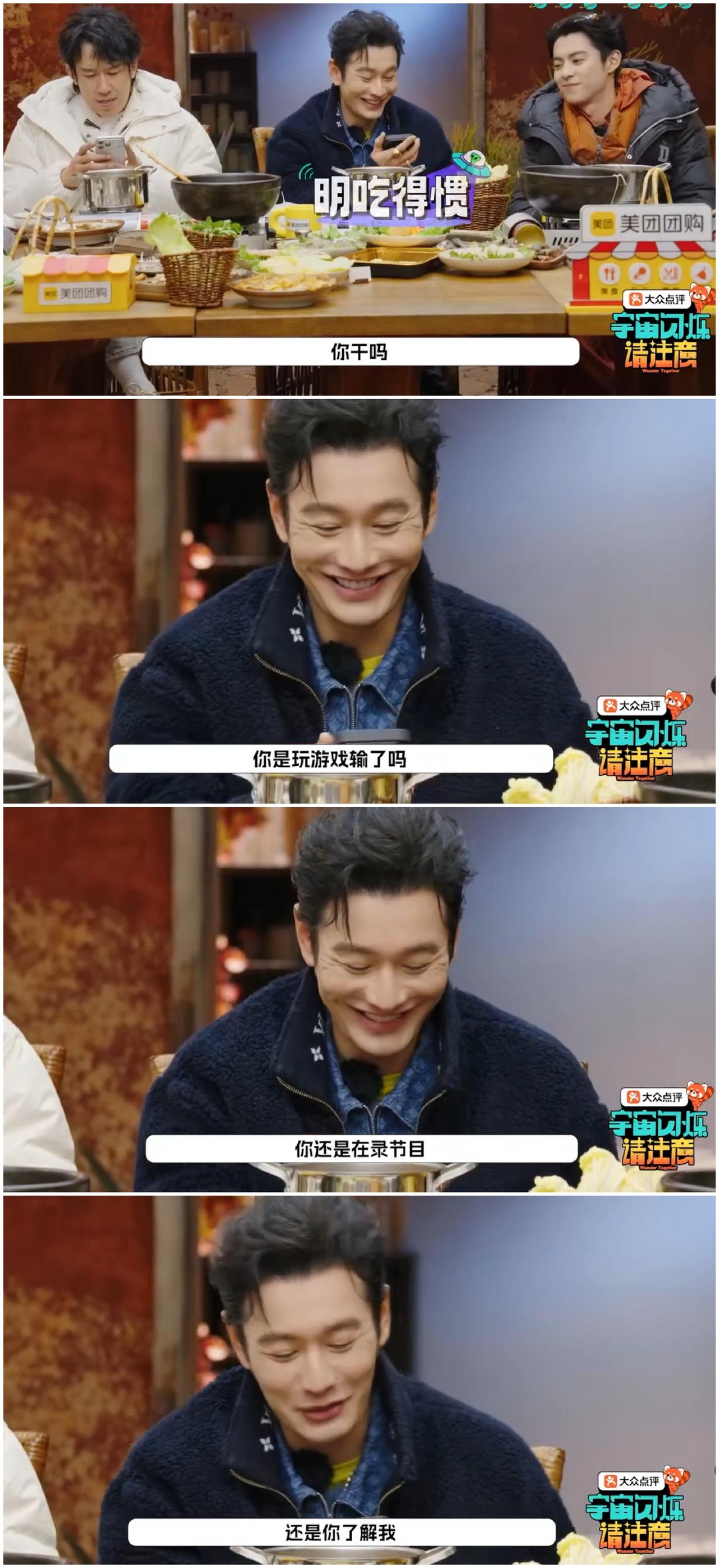 黄晓明跟尹正打电话, 一上来就说“我爱你”, 而王鹤棣跟王传君 画风差不多。 黄晓明打通电话, 就跟尹正“表白” 大声喊“我爱你”。 尹正一听就觉得不对劲, 猜测黄晓明录节目或者玩游戏输了, 才会说出这样肉麻的话。 这样看来黄晓明平时 不会这样跟尹正说话。 而王鹤棣和王传君 平时通话开头第一句就是 “怎么了,宝贝”。 哎呀, 还是王鹤棣和王传君比较黏糊, 那么肉麻。 不过这样看来他们的感情是真的好, 似乎把《爱情公寓》的“关谷”召唤回来了。 他们真的很玩得开。 如果王传君不了解对方是谁, 他的老婆是否会误会呀。 人家黄晓明当下的单身, 跟谁说“我爱你”都可以, 但是王传君是有家室的, 容易被人误会。 被别人断章取义就不好了。 不过感情好的女生之间, 也会这样叫彼此宝贝的呀, 就是有点想多了吧