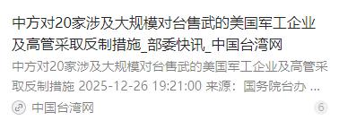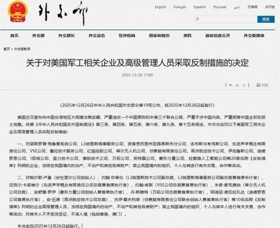 为什么美国军工巨头最终没有选择“硬刚”中国。从目前的情况来看,最主要原因,是美国军工巨头们在面对中国反制时的反应和决策过程很奇怪,甚至包括他们对局势的判断也很奇怪。中国在面对美国军工巨头的挑衅时,采取了果断的措施,而这些措施的时间点很凑巧,刚刚好在对方最薄弱的环节。 麻烦看官老爷们右上角点击一下“关注”,方便您进行讨论和分享,感谢您的支持! 2025 年底,美国宣布对台出售价值 111 亿美元的武器装备,创下美对台军售历史之最,这笔包含 82 套 “海马斯” 火箭炮、1700 架巡飞弹、2595 枚反坦克导弹和 120 门自行榴弹炮的巨额订单,让参与其中的美国军工巨头们信心满满。 诺斯罗普・格鲁曼、波音圣路易斯分公司、L3 哈里斯海事服务公司等行业翘楚,一边享受着政府背书的政策红利,一边盘算着丰厚利润,他们笃信成熟的技术体系和美国政府的支持足以保障订单顺利推进,却严重低估了中国捍卫国家主权和领土完整的坚定决心。在他们看来,过往类似的对台军售虽会引发中方抗议,但从未真正触及自身核心利益,这种惯性思维让他们对潜在的反制风险视而不见。 就在美国官方公布军售计划十多天后,2025 年 12 月 26 日,中国外交部突然亮出反制重拳,依据《中华人民共和国反外国制裁法》,宣布对 20 家涉事美国军工企业及 10 名高管实施精准制裁。制裁措施直戳要害:冻结这些企业和个人在华境内的所有动产、不动产及其他财产,全面禁止中国境内组织和个人与他们开展任何交易合作,同时拒绝为涉事高管签发签证,不准其入境包括港澳在内的中国领土。 这份制裁清单针对性极强,既涵盖了诺斯罗普・格鲁曼这样主导 F-16V 战机雷达系统研发的航空航天巨头,也包括了生产 “鱼叉” 反舰导弹的波音圣路易斯分公司,还有为美军提供水下作战系统支持的 L3 哈里斯海事服务公司等关键企业,涉事高管则包括安杜里尔公司创始人帕尔默・卢基、L3 哈里斯技术公司副总裁约翰・坎蒂伦等核心决策者。 中国的反制之所以能一击即中,根源在于美国军工产业长期存在的供应链空心化短板。上世纪 90 年代以来,美国制造业外移导致军工生产链条严重依赖全球供应,尤其是对中国的核心材料和零部件存在深度依赖。数据显示,美国军工每年所需的稀土中,超过 70% 依赖中国供应,而全球 90% 以上的稀土精炼产能和 91.62% 的稀土永磁体产能都集中在中国,这种不可替代的产业优势成为中国反制的核心突破口。 稀土看似不起眼,却是现代军工的 “工业维生素”,美军几乎所有主战装备都离不开它 —— 每架 F-35 隐形战机需要约 417 公斤稀土用于制造有源相控阵雷达和发动机高温合金,每艘阿利・伯克级驱逐舰的稀土消耗量更是高达 2359 至 2600 公斤,而 “标枪” 反坦克导弹的热像仪镜头、“响尾蛇” 导弹的红外导引头,其核心材料锗和铟锑化合物也主要依赖中国精炼产能。 除了稀土,美国武器系统中 41% 的半导体和 91% 的海军部件都涉及中国供应链,从弹药的钢壳材料到战机的精密电路板,中国制造已深度融入美国军工生产的各个环节。 制裁措施落地后,美国军工巨头们迅速陷入困境。原本正忙着采购物料、加速生产的企业突然发现,供应链从源头被卡住了。诺斯罗普・格鲁曼公司生产 F-16V 战机所需的 AN/APG-83 有源相控阵雷达,因缺少中国供应的稀土磁体无法量产;波音圣路易斯分公司的 “鱼叉” 反舰导弹生产线,因关键电子元件断供被迫放缓节奏;负责制造水下作战系统的 L3 哈里斯海事服务公司,也面临精密材料短缺的难题。 为了维持生产,这些企业不得不寻求替代供应商,但全球范围内能达到军工标准的稀土精炼企业寥寥无几,且新供应商的产能和技术水平短期内难以匹配需求。即便找到部分替代资源,运输成本、技术适配成本也大幅增加,直接导致生产成本飙升,原本预期的利润空间被大幅压缩。 经过一番精打细算,美国军工巨头们逐渐认清了现实:硬刚中国的代价远超出 111 亿美元订单的收益。如果坚持推进军售,不仅眼前的生产困境无法缓解,还可能面临中国进一步的反制措施,届时全球业务布局都将受到冲击。 中国作为全球重要的制造业基地和消费市场,其市场份额和供应链地位短期内难以被替代,失去中国市场意味着失去了巨大的商业机会,而供应链断裂则会影响企业在全球军工市场的竞争力。 更关键的是,中国的反制措施精准打击了他们的核心痛点,既没有陷入无差别对抗,也没有给对方留下太多缓冲空间,这种 “打蛇打七寸” 的精准施策,让美国军工企业意识到,任何试图挑战中国核心利益的行为都将付出沉重代价。 信源:新华网——外交部公布关于对美国军工相关企业及高级管理人员采取反制措施的决定