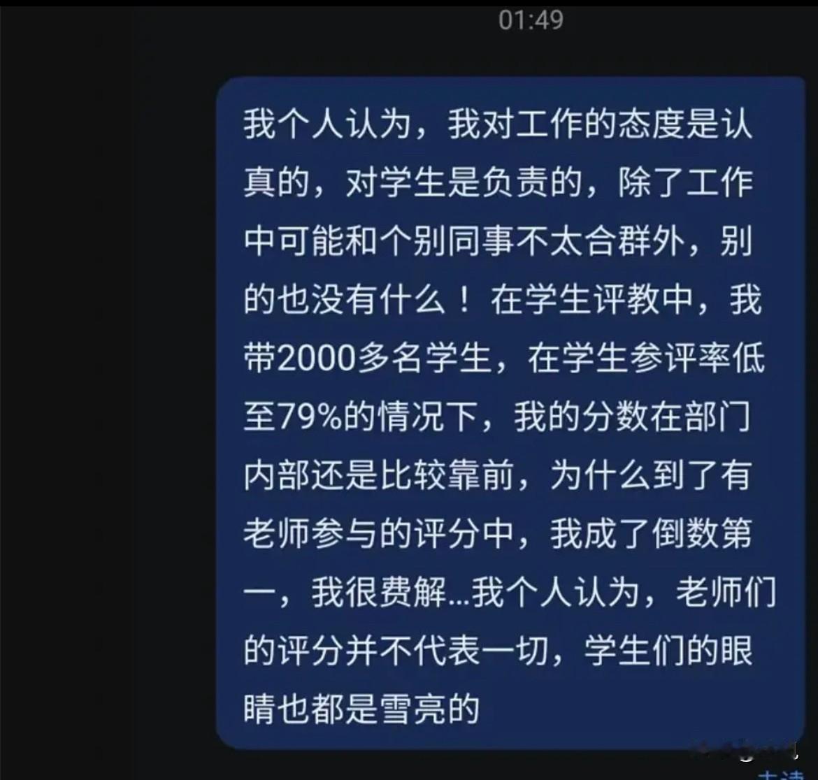 学生说她是个好老师,同事却联手给她打了倒数第一。 山东曲阜远东职业技术学院,一位老师在网络上说出了自己的憋屈事。她贴出了自己的考核结果,连续两个学期,期末综合考核都是倒数第一。 最让她想不通,也最让外人看不懂的,是分数的“冰火两重天”。在她看来,最能体现教学本质的学生评教环节,她的排名其实比较靠前。这说明,坐在课堂里听课的学生们,认可她的课。 但考核不止学生打分。到了“教师互评”这个环节,她的分数急转直下,直接掉到了末尾,把总成绩拖成了“倒数第一”。这位老师直接质问学校:我到底是违反了师德师风的哪一条细则?请拿出具体的条款和评分依据给我看。她觉得,光列个名字打个分数,太主观了。 事情闹出来后,学校有工作人员出来回应了。校方说,他们的考评分为三个部分:学生评教、教师互评,还有单位评价。整个评审有专门的表格,分成四大块。学校已经组建了工作专班,说要“扎实调查这件事”,还计划开一个很大范围的座谈会。 对于为什么学生评价和同事评价差距这么大,工作人员的解释是:打分有对应的比例。这话听起来,像是说“教师互评”的权重可能不低,足以扭转学生好评带来的优势。 更值得玩味的是评论区。有网友自称曾是该校教师,遇到过类似情况,最终选择离开。对于这种“前员工爆料”,学校工作人员的回应是:不排除有网友带节奏,老师离职也是个人原因。 这件事撕开了一个口子,让高校里那套复杂的教师考核体系被摆上了台面。 “教师互评”的水,可能比想象的要深。同行打分,评的究竟是教学水平和专业能力,还是人际关系和圈子文化?当评价结果直接关系到排名、绩效甚至职称时,它会不会变成一种隐形的竞争工具?有没有可能,埋头教书、不善交际的老师,反而最容易吃亏? 而“学生评教”本身,也是一把双刃剑。为了得到学生的高分,会不会有老师被迫去“讨好”学生,降低课业要求?反过来,严格负责、不给高分的老师,会不会遭到学生的“报复性”差评?有研究早就指出,学生评教有时会沦为“形式”,学生为了快点看到期末成绩,敷衍地全打“优秀”。这样的“好评”,含金量又有多少? 考核的本意是激励老师,提升教学。但如果制度设计不好,就可能让老师无所适从:是对学生负责,还是对同事的“评价权”负责?是坚守教学要求,还是追求一团和气的高分? 曲阜远东职业技术学院这位老师的遭遇,不是一个孤立的怪事。它像一根刺,扎破了看似完备的考核体系表面,让我们看到里面可能存在的矛盾、偏差甚至是不公。学校承诺的调查,不能止于给这一次事件下结论,更应该审视:我们的考核,究竟想把老师引向何方? 图片来源于网络,侵权必删 综合信源:潇湘晨报、观察者网、腾讯新闻、曲阜远东职业技术学院官网、光明网