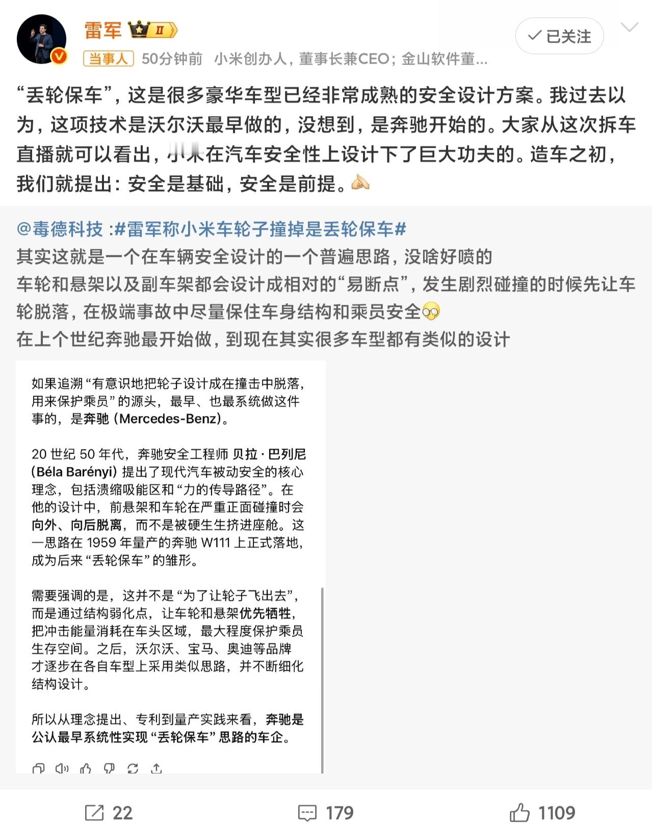 雷军回应丢轮保车大家都只会嘲笑,又崴脚了,又断轴了,汽车科普任重道远。