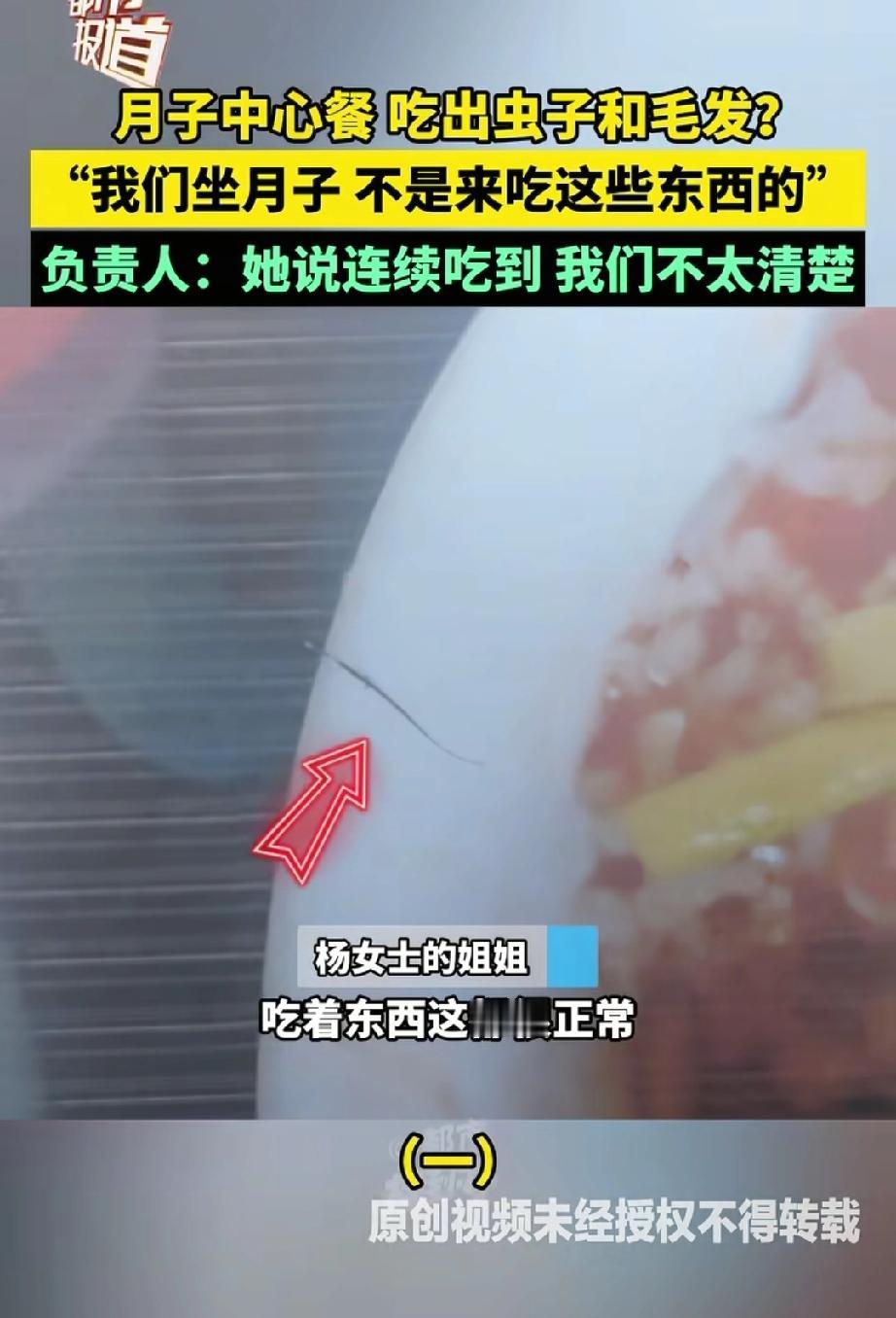 这钱花得太憋屈!河南,宝妈生完宝宝多不容易啊,身体虚弱得很,就盼着去月子中心能被好好照顾,吃好喝好养身体。花18000块钱住月子中心,按理说这价格不算低,怎么着也得是干净卫生、贴心周到的服务吧?可谁能想到,这位宝妈住了12天,月子餐里竟然连续6次出现异物! 有时候是爬来爬去的小虫子,有时候是混在饭菜里的不明毛发,最让人膈应的是,还有一次直接吃到了蟑螂腿! 宝妈拿着有异物的饭菜找月子中心要说法,本想着对方能诚恳道歉、赶紧整改,还能给个合理的解决方案。 结果人家不仅态度敷衍,说“可能是食材没洗干净”,还不愿意退钱,只想着用什么免费项目来抵扣,完全不管宝妈心里多难受、身体受不受影响。 有网友说:“我闺蜜之前也住过这家附近的月子中心,也吃到过头发,当时没好意思较真,现在看来不是个例啊!” 还有网友怒怼:“月子中心就是赚宝妈的信任钱,连最基本的食品安全都保证不了,配叫月子中心吗?” 更有人说:“1.8万12天,一天合1500块,就吃这玩意儿?这不是坑人吗!” 其实咱们普通人花钱买服务,图的就是个安心、放心。尤其是月子期的宝妈,本来就刚经历生产的痛苦,身心都很脆弱,最需要干净的饮食和细心的照顾。 这些月子中心拿着高额费用,却连食材清洗、厨房卫生都搞不好,这不仅是不负责任,更是在消耗大家的信任! 不管是做生意还是做服务,诚信和底线不能丢,食品安全更是重中之重,容不得半点马虎。 希望监管部门能加大对月子机构的检查力度,把那些卫生不达标、服务不靠谱的机构都查出来,让它们整改到位。 也盼着所有月子中心都能引以为戒,把宝妈和宝宝的健康放在第一位,用心做好每一顿饭、每一项服务。 未来,每个生完宝宝的妈妈,都能在月子中心舒舒服服、安安心心度过,不用再担心吃到异物,不用再为花钱遭罪而委屈,这才是月子中心该有的样子呀!