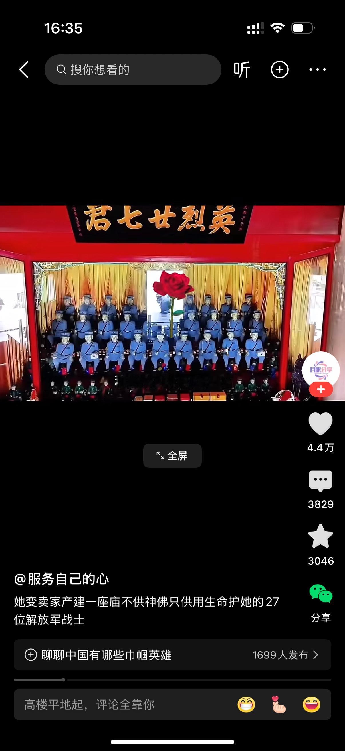 曾阿兴,改名曾恨,她变卖家产,欠债70万建起这座天下第一庙,就为了怀念当年为救她牺牲的27位解放军战士。这庙不供神佛,只供用生命守护她的27位解放军战士。曾恨已经80多岁的高龄,依然每天擦拭庙宇,守护着这座庙宇,守护着那些最可爱的人。