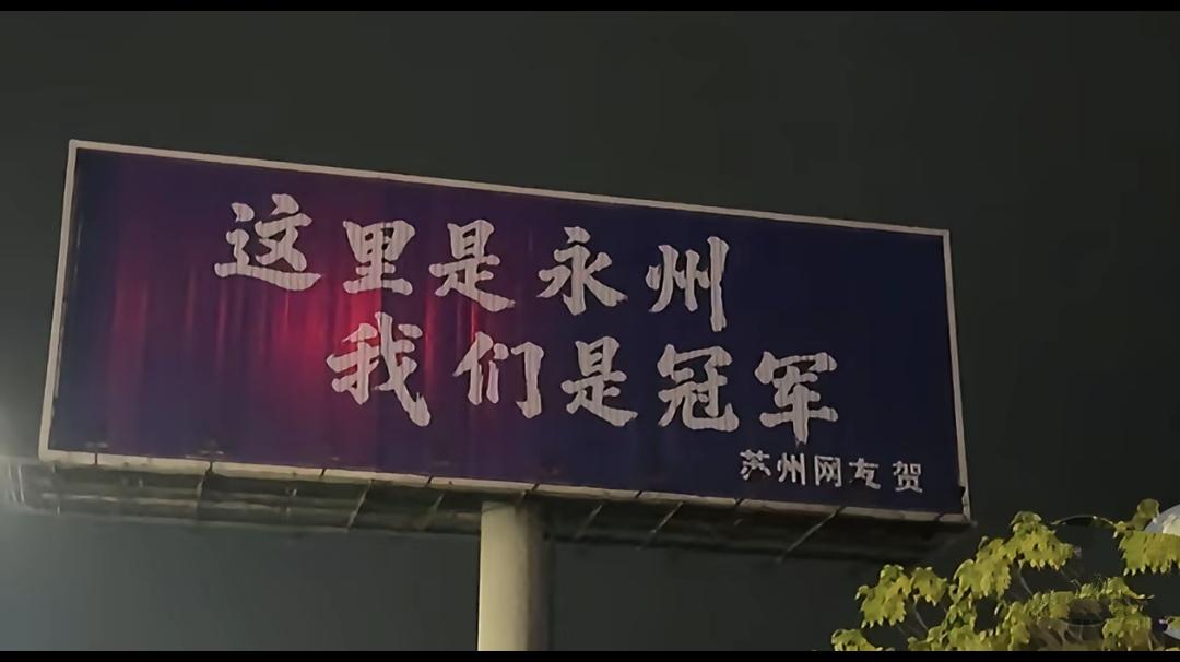 2026年苏超已经开始了,从永州的广告牌开始! 永州毕竟是湖南省的冠军。 苏州和南京,就没有想过去泰州做广告吗? 去苏超冠军城,买两个广告牌多好。 新赛季南京和苏州就比谁的排名高。[思考]