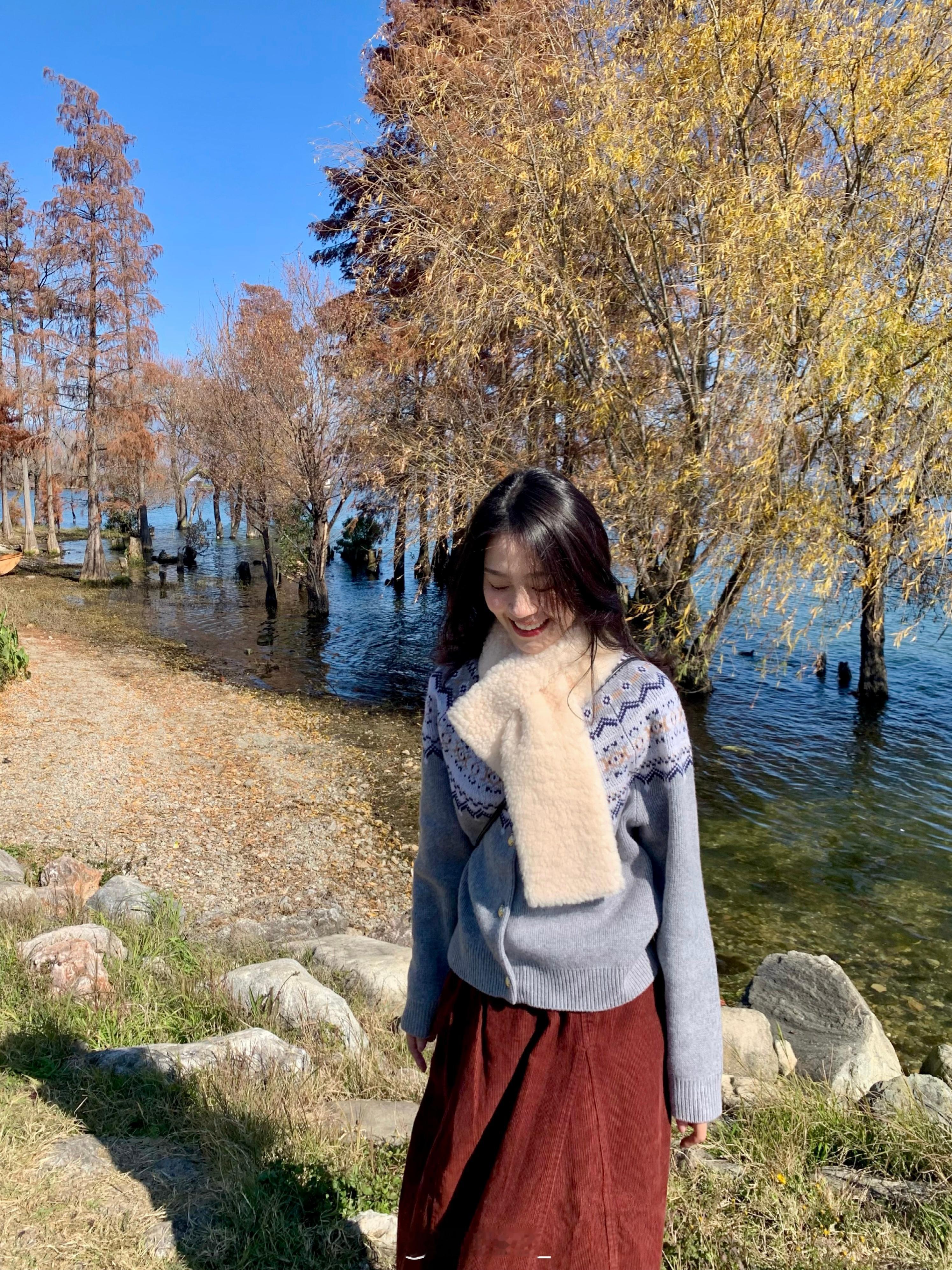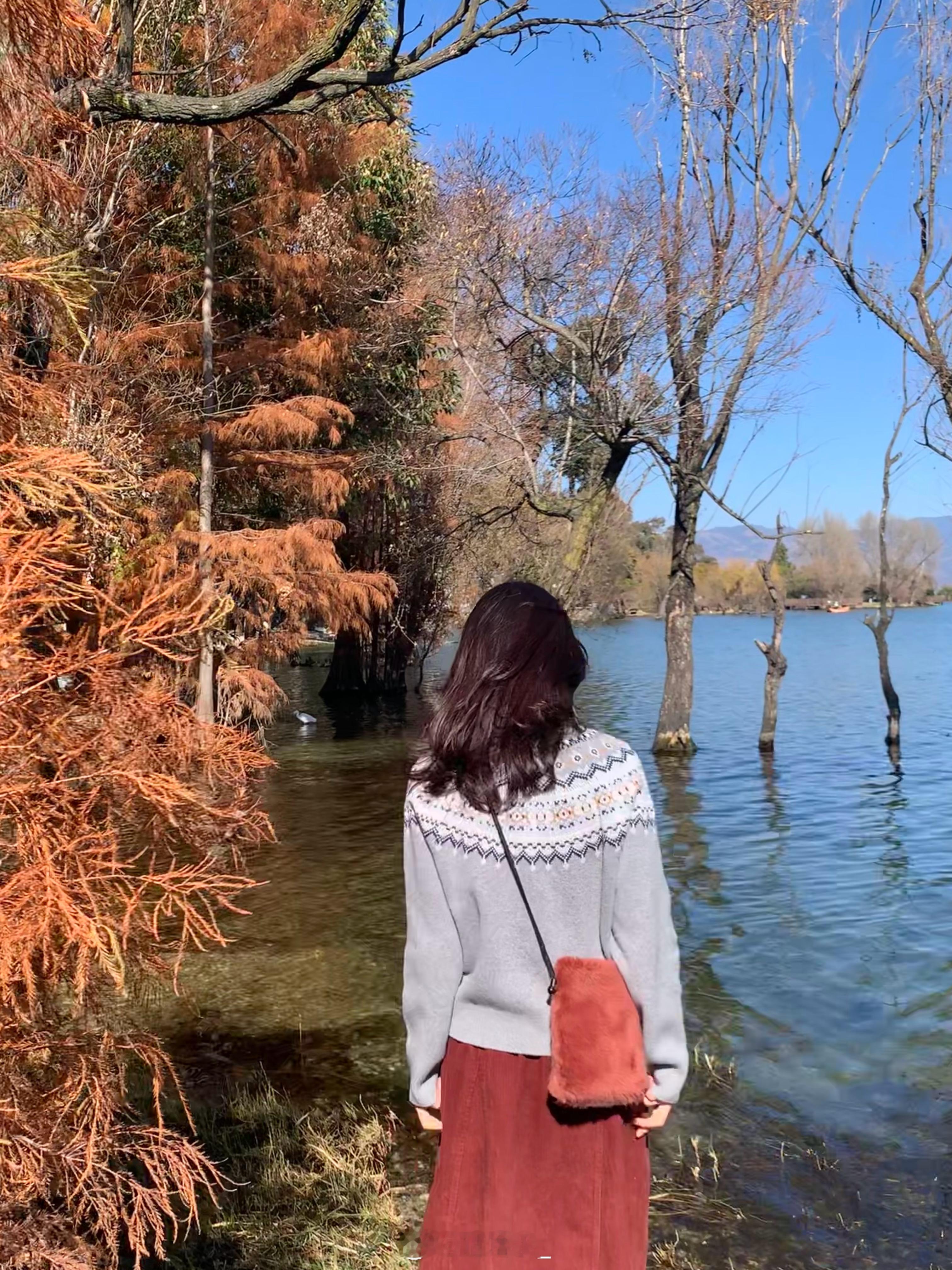 冬日暖阳下,白桦林与红叶相映成趣,静谧而美丽。