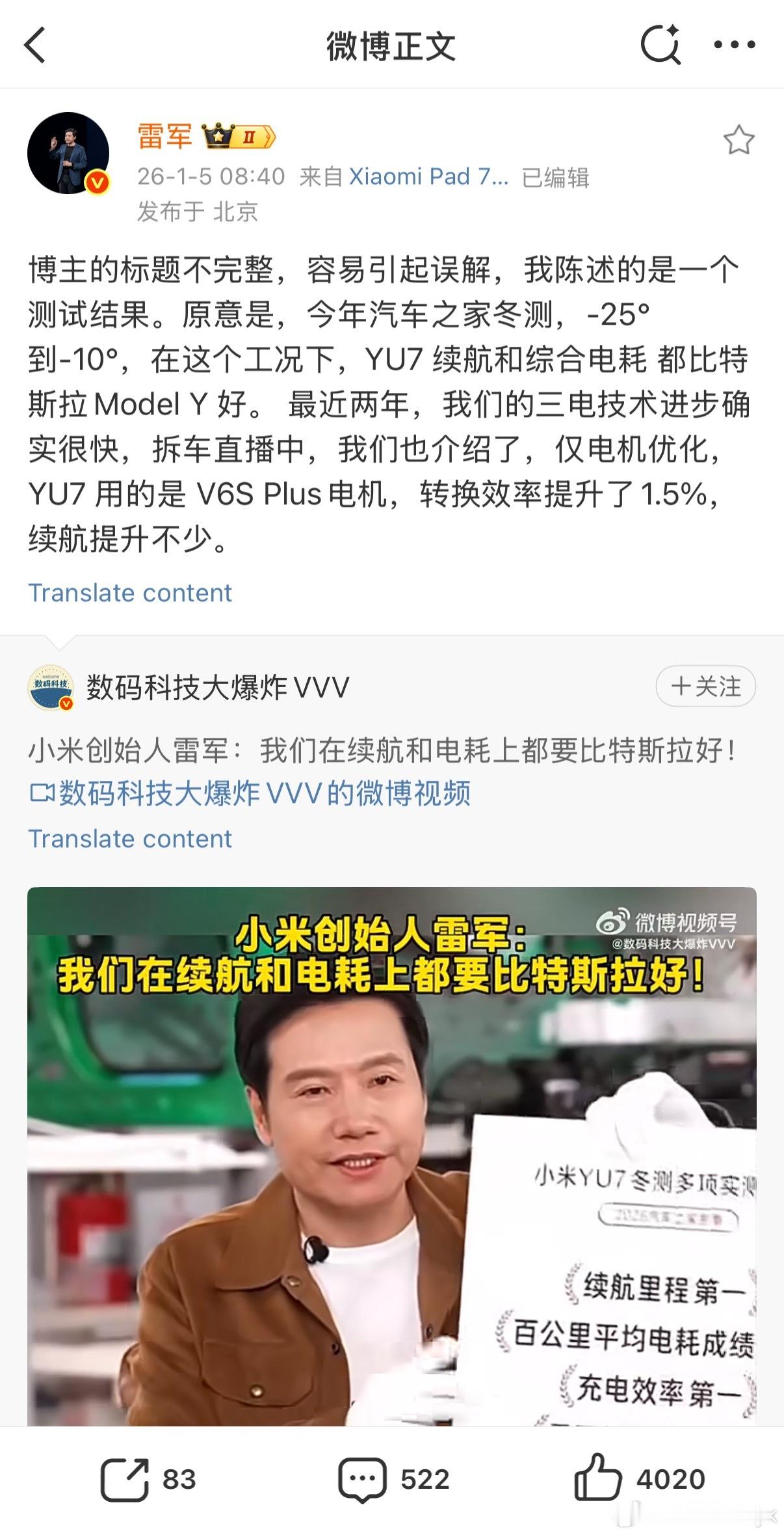 雷军回应续航电耗超特斯拉雷总这一波说的确实是很客观雷总就是在汽车之家本次测试中小米YU7的表现确实更好,但是单次测试是有局限性的咱们不能直接泛泛就说YU7续航电耗超了特斯拉,能够这么客观确实值得点赞大v聊车