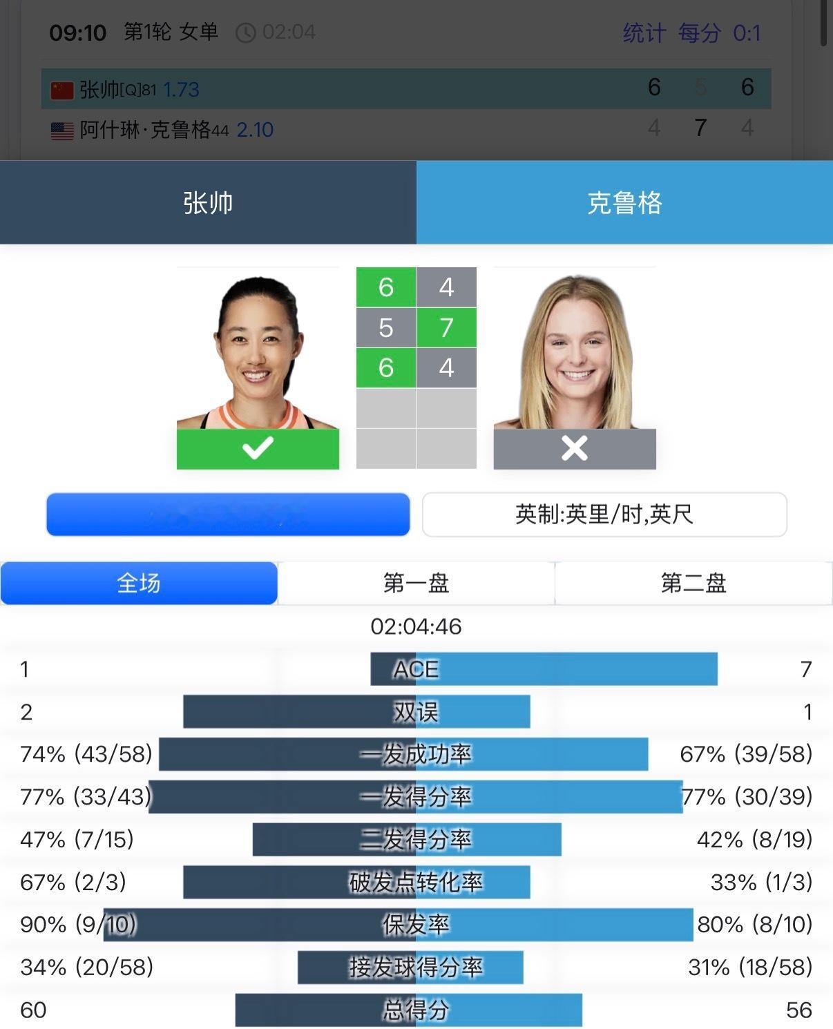 张帅64 57 64击败克鲁格!张帅太让人惊喜了,在WTA500赛布里斯班从资格赛突围并打进32强,下轮对阵莱巴金娜目前拿下57分,排名上升至No.79……网球talking大会网球热点现场