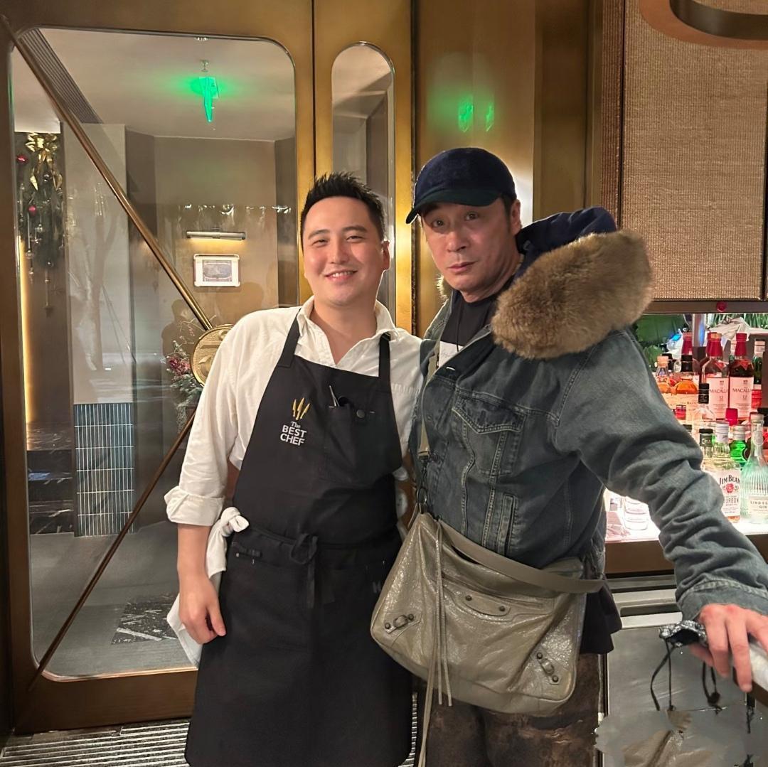 吴镇宇和儿子费曼还有好友一起在餐馆聚餐,三人合影,17岁费曼又胖了,圆圆的脸蛋,身材臃肿,留着一头长发,简直比自己老爸还要老气,吴镇宇64岁了,比儿子还要时尚帅气,这爷俩倒过来了,感觉费曼像是做父亲的,吴镇宇到像儿子了!