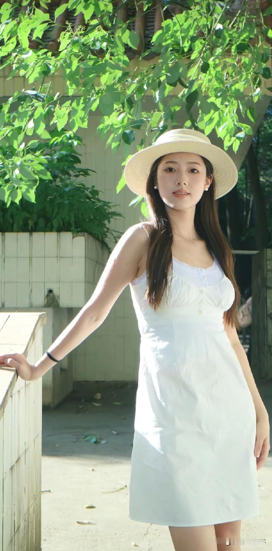 素衣映春展温婉绿意葱茏的林间,一袭素白衣装与自然景致相融,似将春日的清辉揽