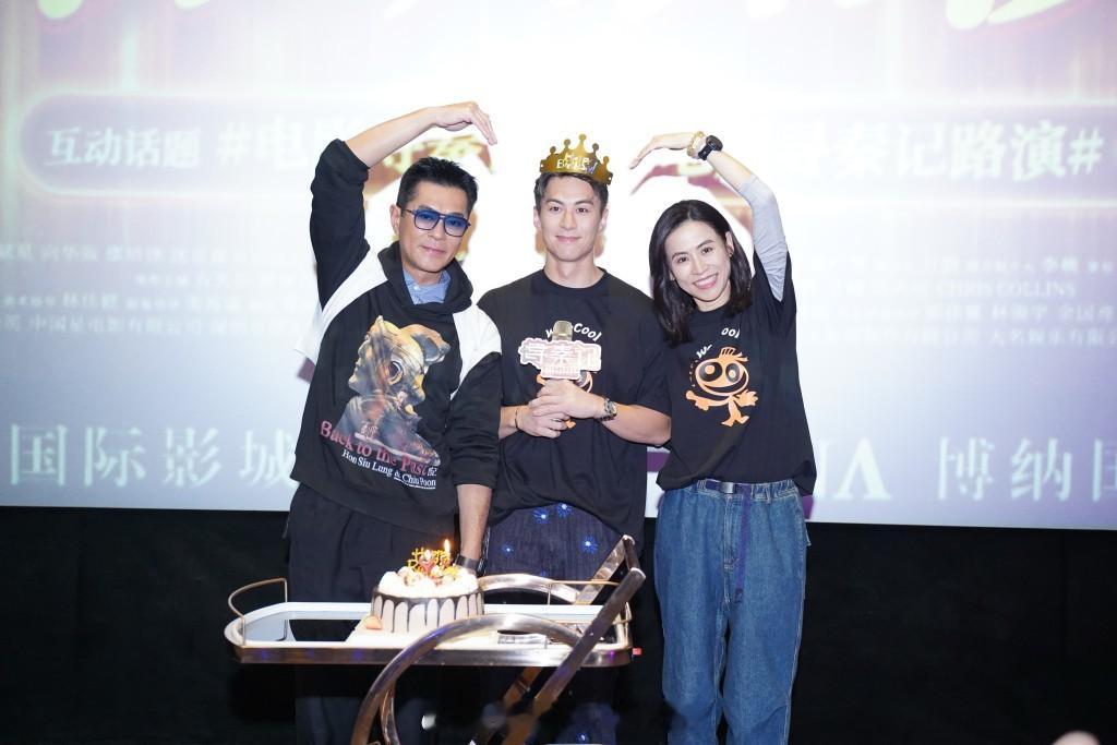 星岛:朱鉴然获古天乐宣萱提早庆生 自爆“生日请求” 每人叫10位好友看《寻秦记》今天生日的朱鉴然前晚在深圳路演中,与戏中的爹哋妈咪古天乐、宣萱,一家三口齐齐整整与现场观众预祝生日,场面温馨,朱仔为自己祈愿之余,还不忘提醒现场fans每人叫10位好友,到戏院看好戏看《寻秦记》。古仔、宣萱向朱仔送上祝福前晚路演进行期间,工作人员特意推出蛋糕,给朱仔惊喜,为他预祝生日。身为daddy项少龙古仔与妈咪乌廷芳跟寿星仔朱仔项羽,三人一起摆了一个心心甫士,画面温馨动人,甜到漏。提到“生日愿望”?他笑谓:“生日愿望是不可以直接讲出来的!”所以他以“生日请求”来表达,温馨提示叫大家入场看戏!现场观众十分热情,大合唱生日歌,古仔和宣萱也给朱仔送上祝福,让他在工作中欢度一个幸福满满的生辰。