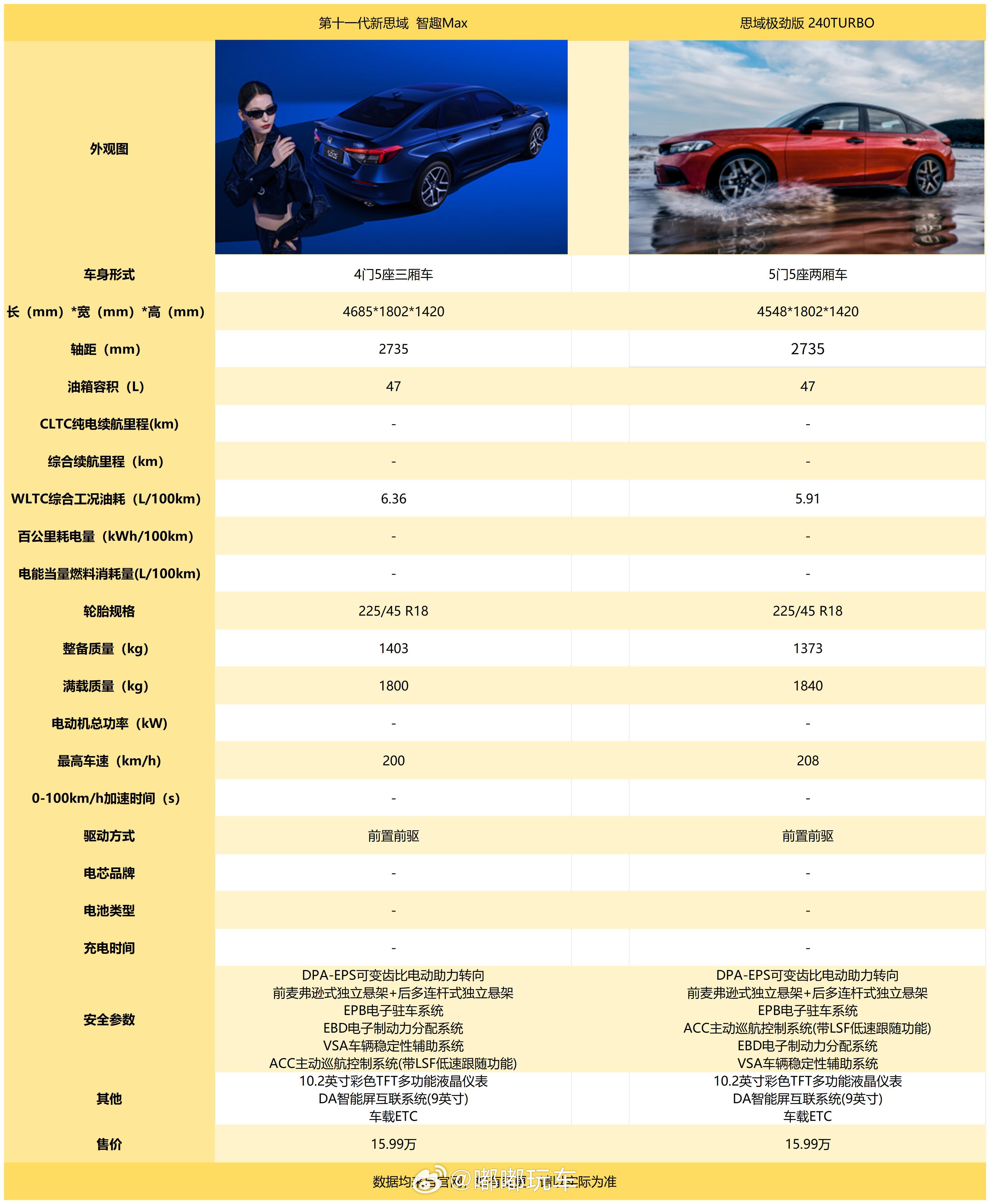 这几期有点意思,同系列的不同迭代车型,先来思域吧~差别不大,车身长度、最高车速、满载质量等有略微的差别,其他的都一样,外观上也没啥太大差别,这更新迭代的意义是啥呢?思域汽车更新