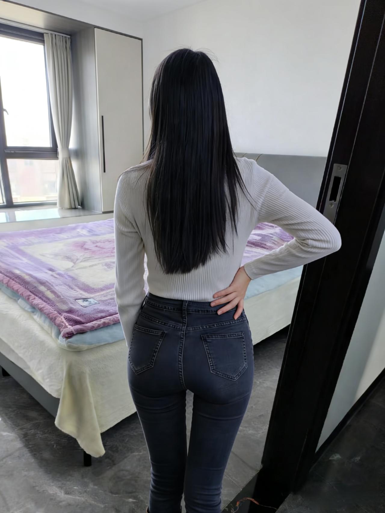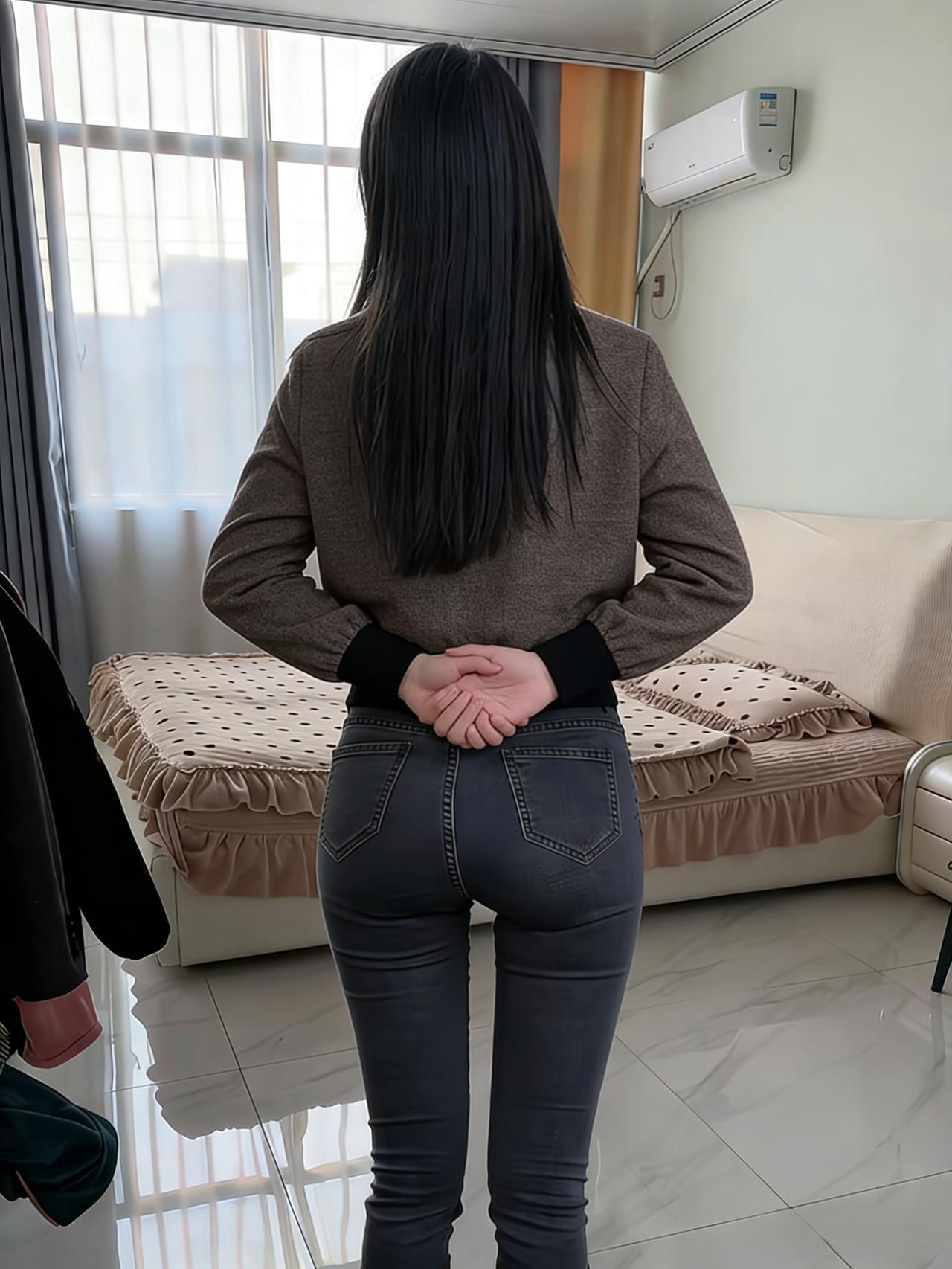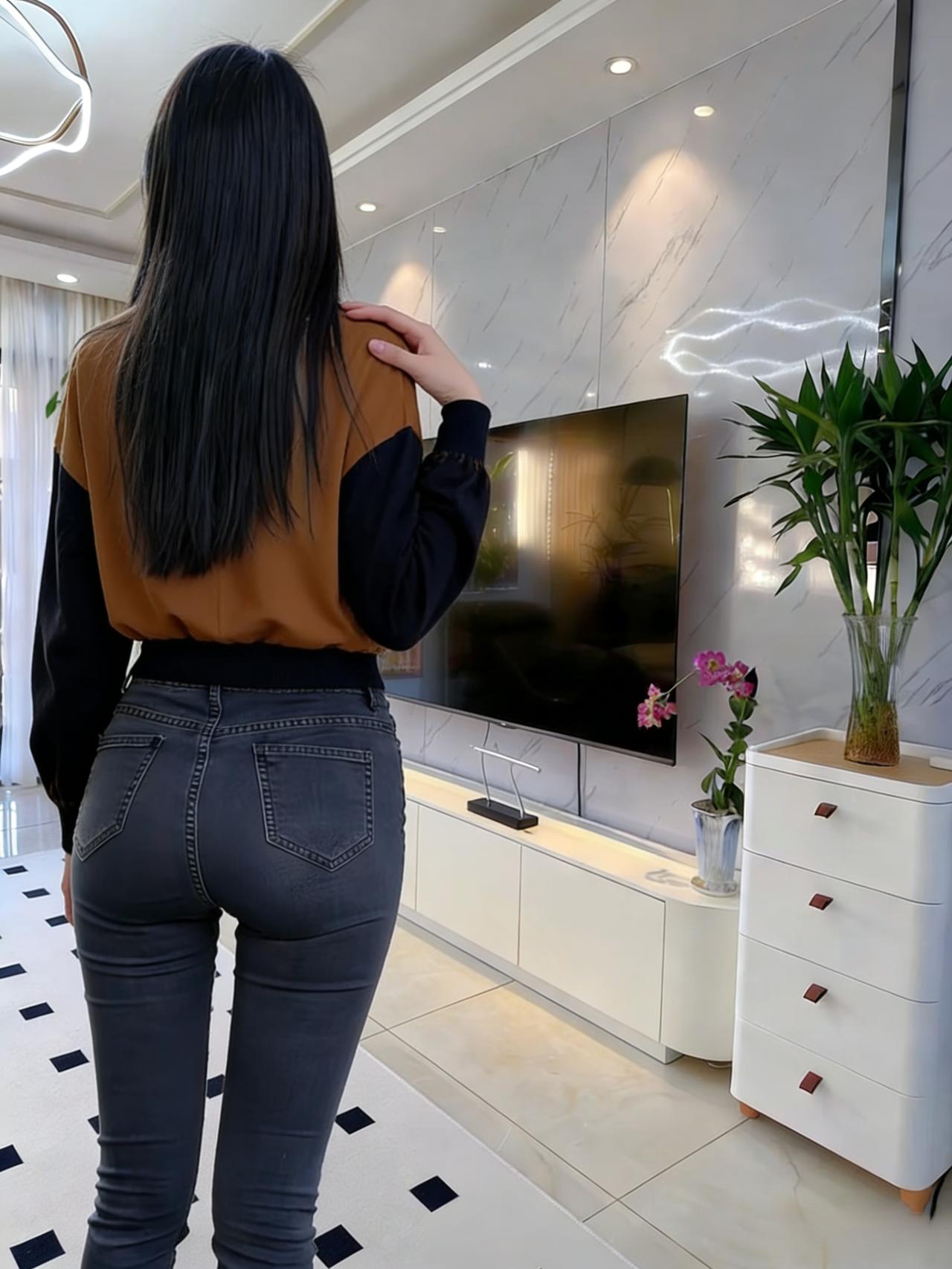 她的背影是一组未破译的暗码 藏在长发的阴影里,藏在衣料的纹路间 牛仔裤的缝线,是暗码的棱线 勾勒出腰臀间流畅的弧度,像海岸线的蜿蜒 针织衫的色块,是暗码的底色 棕与黑的交织,揉着人间烟火的温 ~ 在卧室的不同角落,背影辗转 手抚发梢时,是暗码里的轻扬音符 手抵后腰时,是暗码里的沉稳节拍 光与影在她背上叠出层次 像钢琴键被按动,却未发出声响 只留余韵,在空气里轻轻荡 ~ 客厅的光更亮,她的背影却更朦胧 绿植的绿,衬得那抹棕黑更具张力 发梢扫过肩胛骨的弧度 是暗码里最纤细的一笔,勾着视线 不必拆解这暗码的深意 单是凝望这背影,就像触摸到 一颗鲜活的灵魂,在日常里 以背为幕,演着独属于自己的剧本 ~ 那些被背影藏起的情绪 或许是晨起的惬意,或许是独处的安然 都化作线条与轮廓,在空间里铺展 成为旁人眼中,最惊艳的风景 而她始终背对着,像守着一座秘密花园 让每个凝望的人,都甘愿做个 安静的访客,不敢惊扰,只愿轻赏