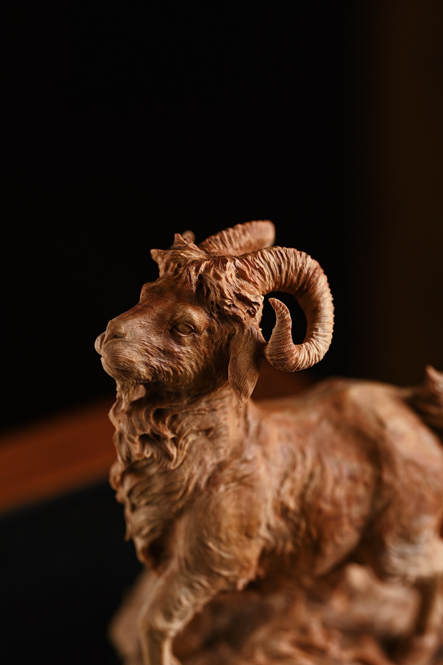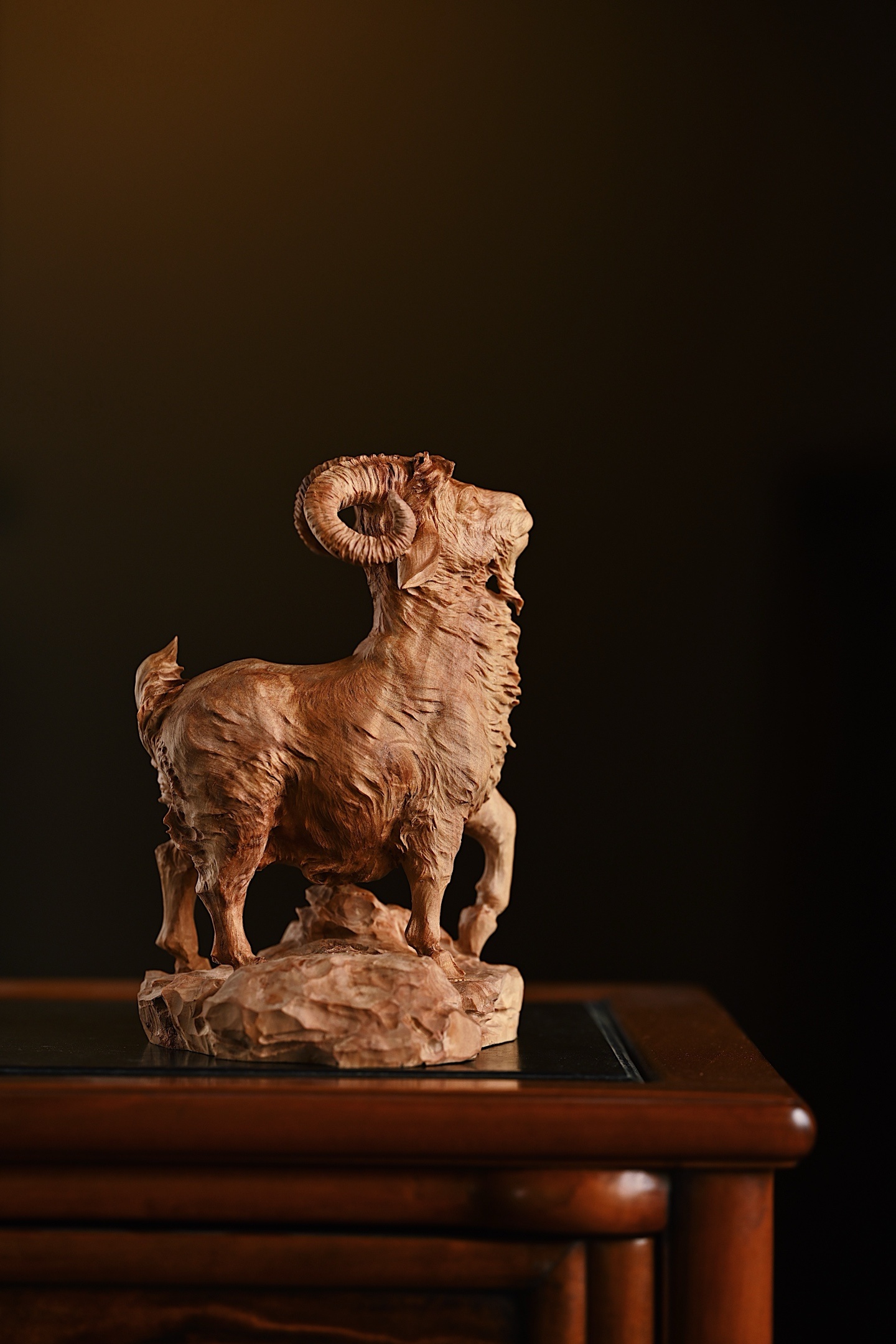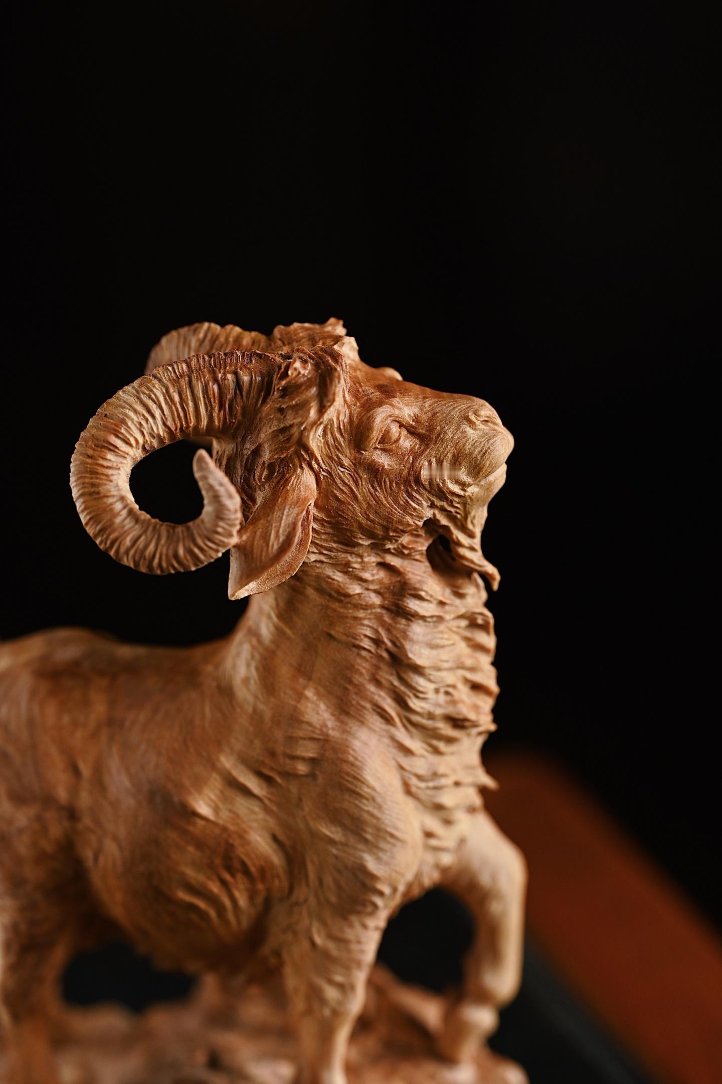 老山檀 | 领头羊 摆件木质细腻,整料雕刻山羊肌骨健壮,扬角抬足,立于山石之上,整体精神奕奕,尽显领头羊卓然不凡的风范。8.5*8.2*12.8cm 190g
