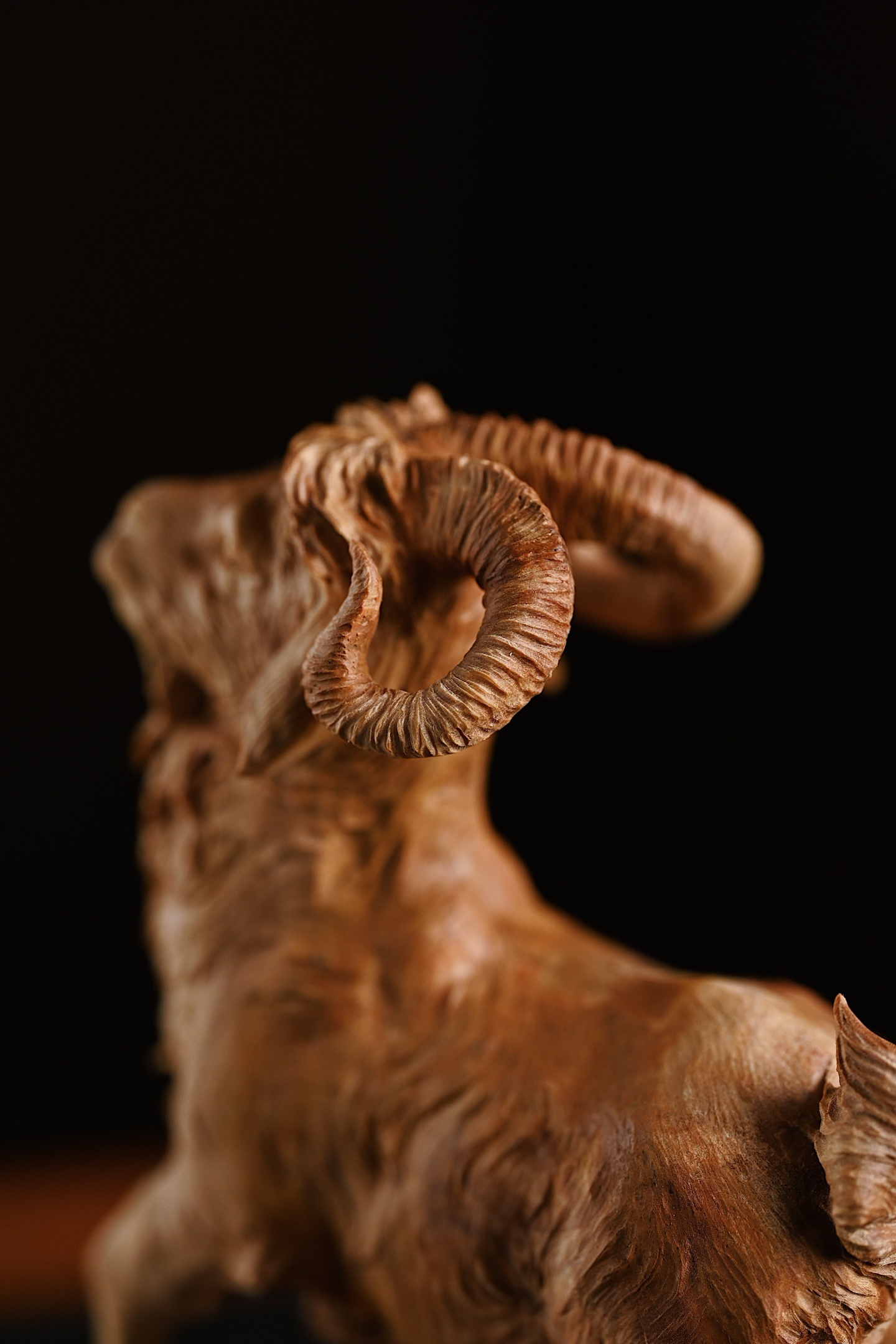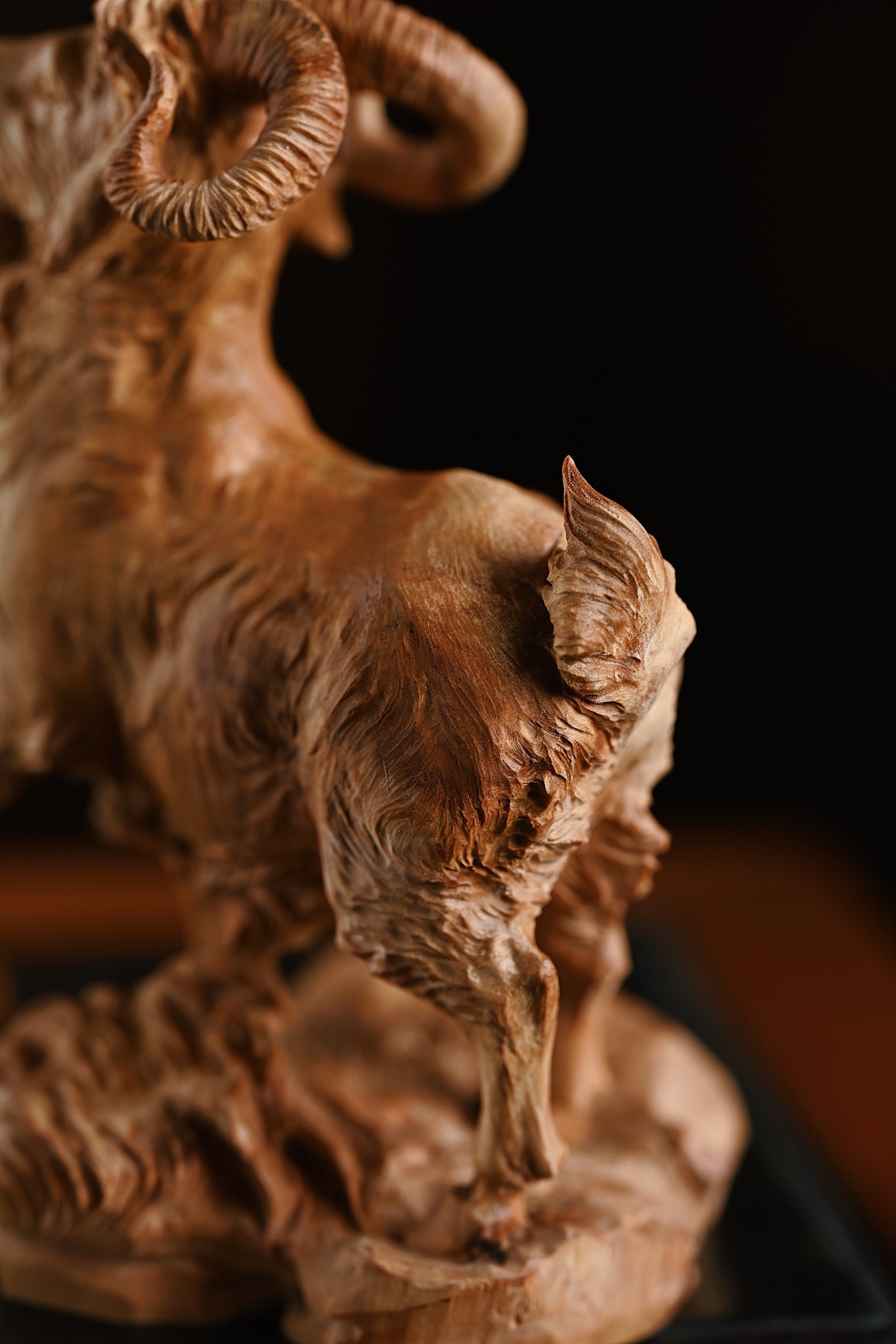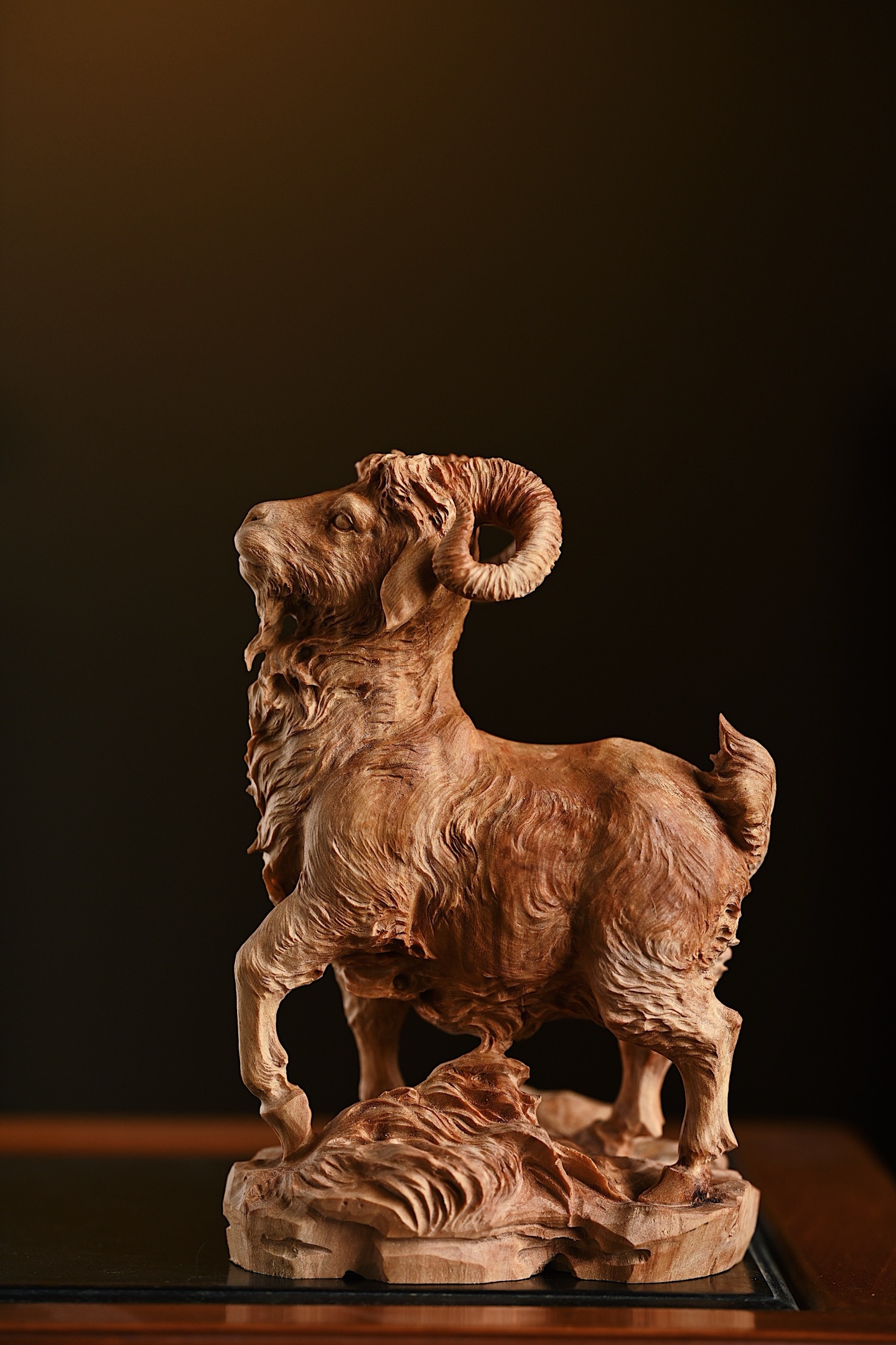 老山檀 | 领头羊 摆件木质细腻,整料雕刻山羊肌骨健壮,扬角抬足,立于山石之上,整体精神奕奕,尽显领头羊卓然不凡的风范。8.5*8.2*12.8cm 190g