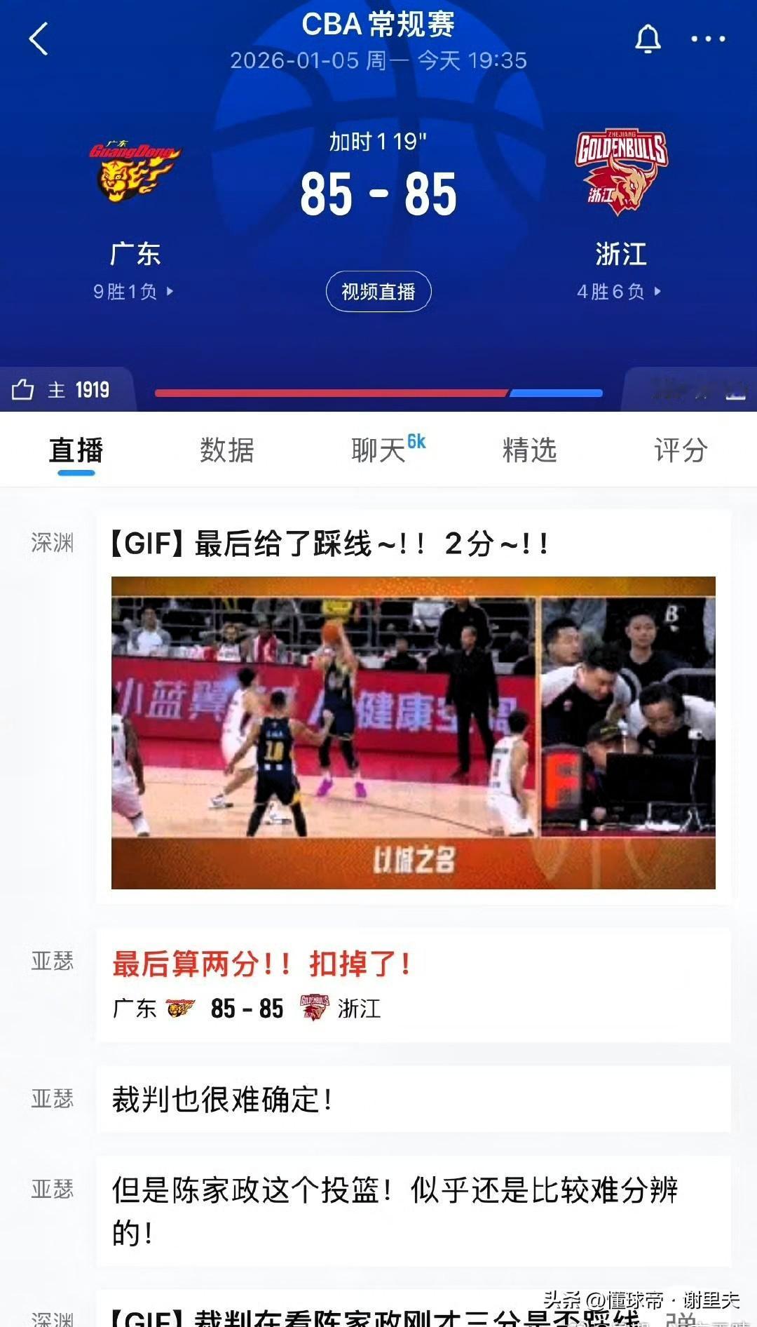 不得不说,浙江绝杀裁判崔哲雄老师绝对立功,回看陈家政3分变2分才给浙江队绝杀机会,绝对严谨! 徐杰投进关键三分,胡明轩在替补席瘪嘴,形成鲜明对比,不要多想,其实俩个人关系挺好的,有可能是胡明轩看的入神忘记喝彩吧。胡明轩和徐杰毕竟是cba最近两个赛季的新老票王,不存在竞争关系,希望彼此球迷们精诚团结,呼吁互相投票,把头衔留在广东队