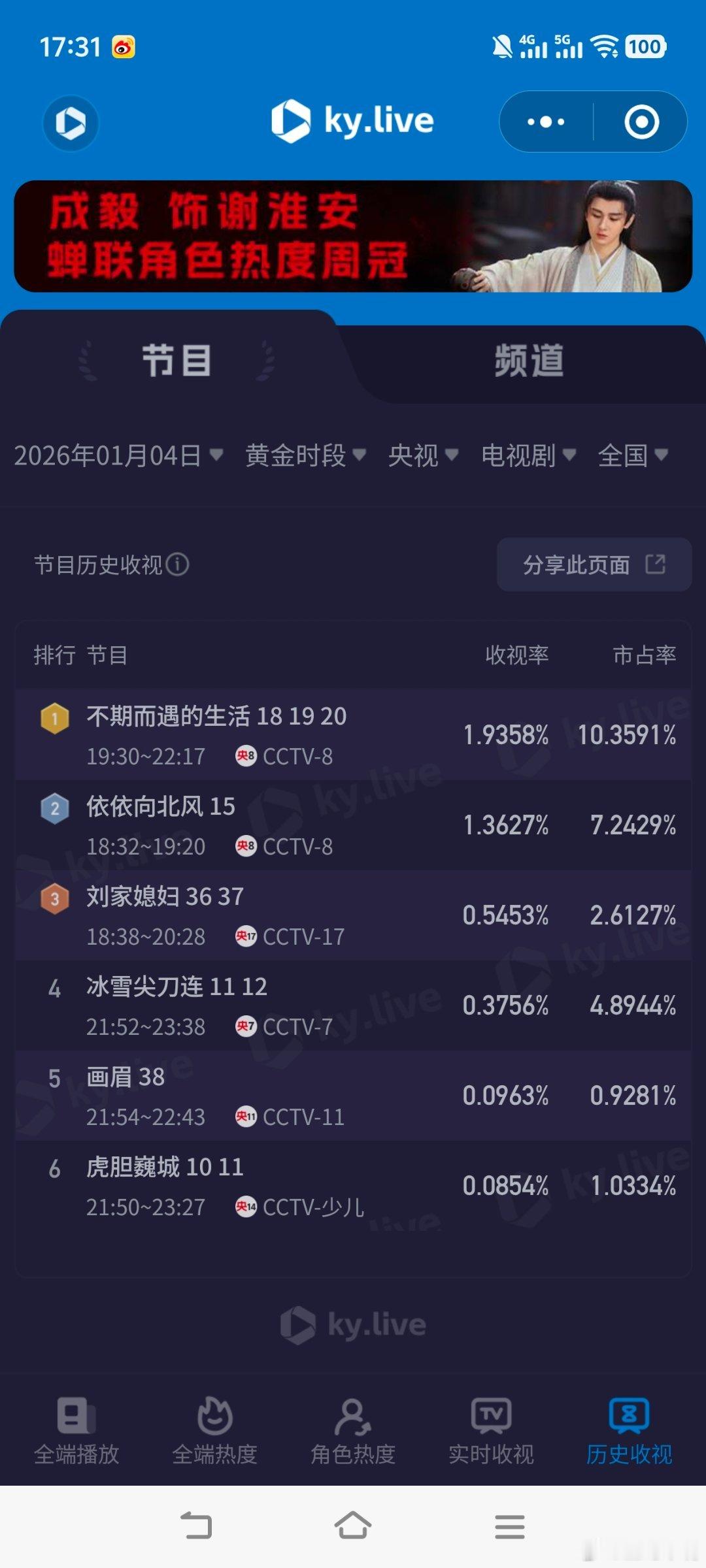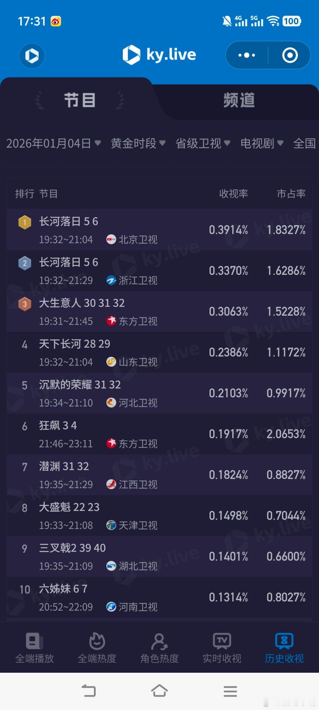 电视剧不期而遇的生活 1月4日cvb收视日报不期而遇的生活1.653,酷云1.9358,系数0.854长河落日 京0.405,酷云0.3914,系数1.035长河落日 浙0.343,酷云0.3370,系数1.018长河落日