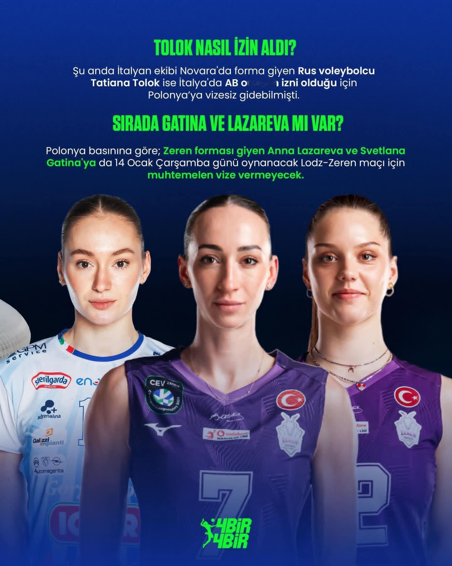 根据波兰自2022年9月起对俄罗斯公民(含运动员)实施的严格入境限制,以及欧盟自2025年11月起停止向俄罗斯公民发放多次入境申根签证的规定,俄罗斯运动员目前前往波兰参赛面临显著障碍。在此背景下,俄罗斯运动员通常选择通过德国申请申根签证,再经由陆路进入波兰。然而此次,阿尔蒂娜(费多洛夫采娃)在德国的申根签证申请未获批准,原因是波兰与德国边境已重启边检。尽管费内巴切俱乐部多方努力,此问题仍未能解决。相比之下,目前效力于意大利诺瓦拉队的俄罗斯排球运动员塔蒂亚娜·托洛克因持有意大利颁发的欧盟居留许可,得以免签进入波兰。另据波兰媒体报道,身穿泽伦队服的安娜·拉扎列娃和斯韦特兰娜·加蒂娜也可能无法获得签证,或将缺席1月14日星期三举行的罗兹-泽伦比赛。此前,未能获得签证的运动员最便捷的途径是飞往德国,再乘车从陆路进入波兰,但随着波德边境管控的恢复,这一方式亦已受阻。