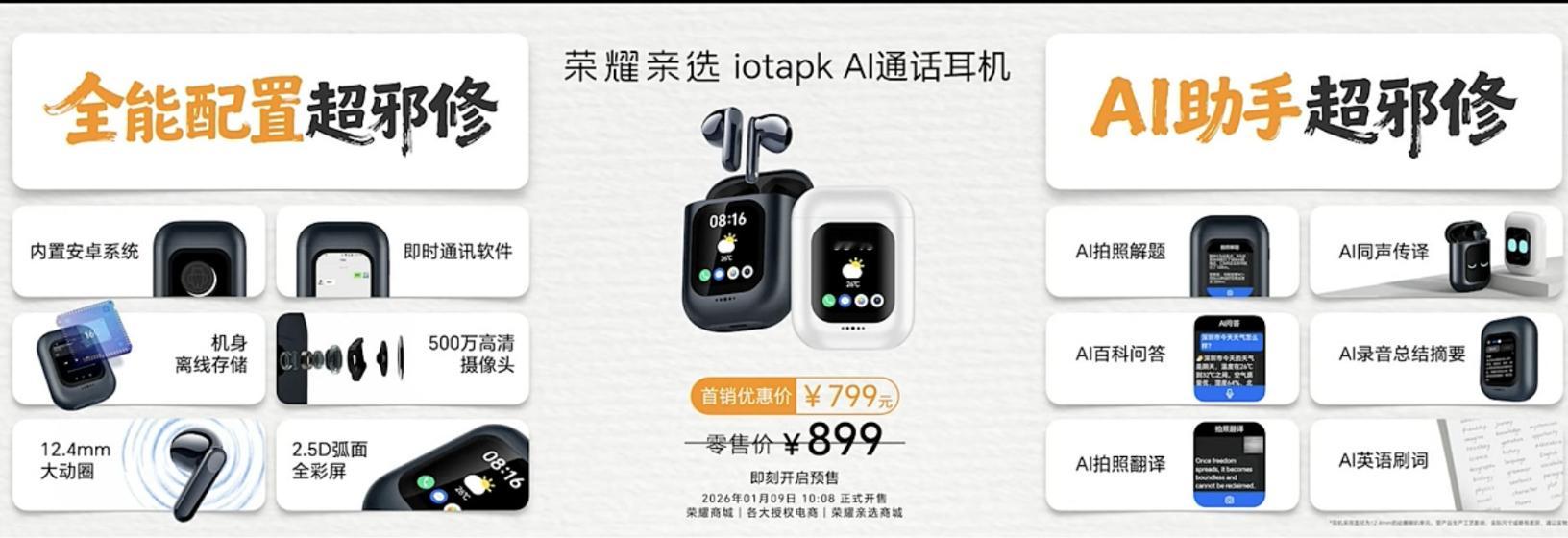 除了荣耀Power2,这次发布会还有几款有趣的产品~荣耀平板10 Pro新春礼盒,购买送荣耀Magic-Pencil 4s,售价2499元起。荣耀平板X10 Pro,11.5英寸2.5K屏、8300mAh电池,售价1499元起。荣耀亲选 iotapk AI通话耳机,内置安卓系统、AI同声传译、AI录音总结摘要等,售价799元。荣耀亲选耳机DOINGTOP X8i,智慧深度降噪3.0、44小时续航,售价129元。荣耀亲选 UIMU AI扫振电动牙刷,AI口腔分析、180天续航,售价149元。看完之后,你喜欢哪款呢?