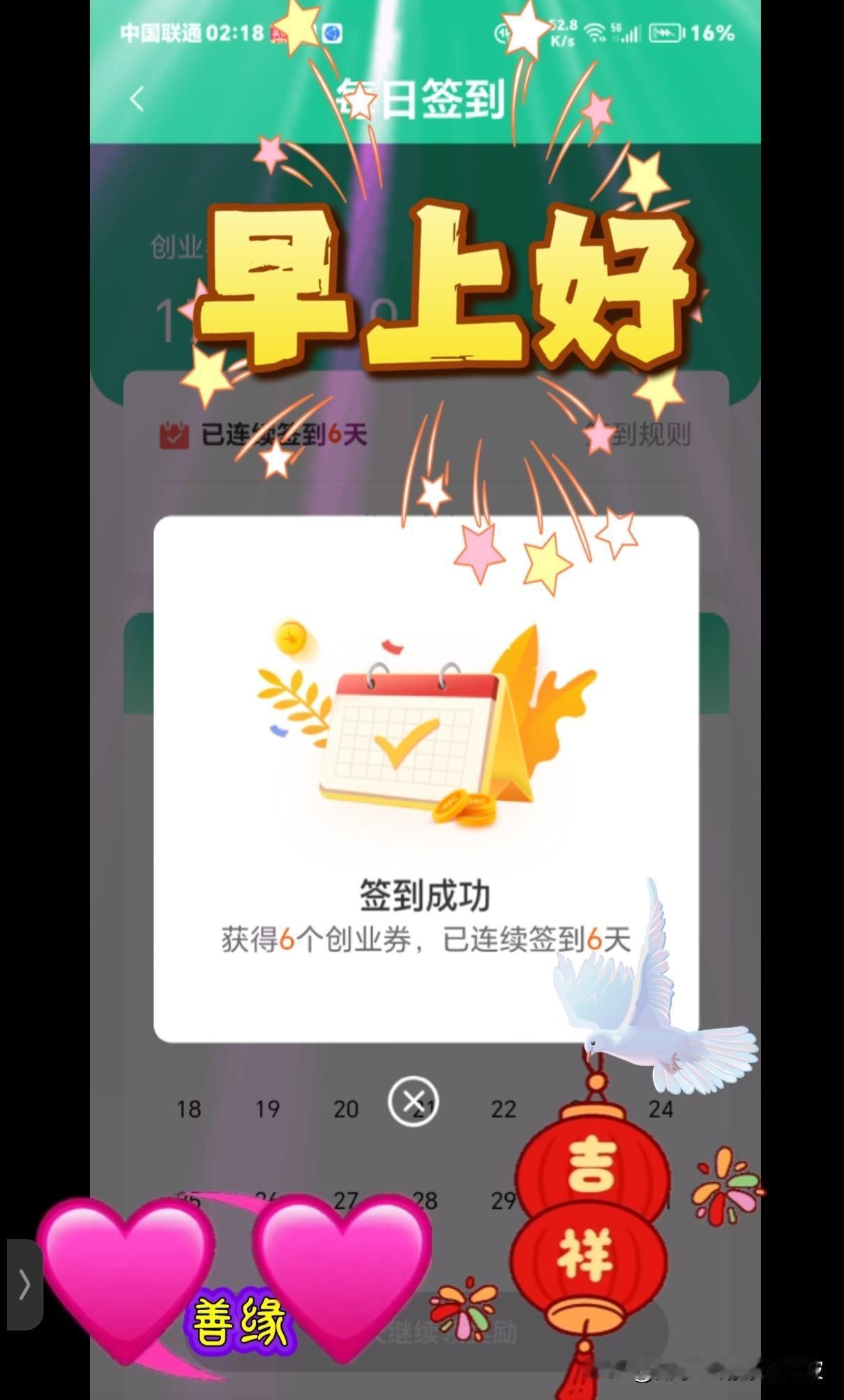 今天是2026年1月6日,星期二,签到成功,获得6个创业卷,已连续签到6天! 冬天最暖的是太阳☀️人间最暖的是关怀❤️每天最暖的是问候🍮 ㊗️愿我们在相互关心牵挂中,照顾好自己,保重身体。 早安吉祥平安如意🙏🍅💃