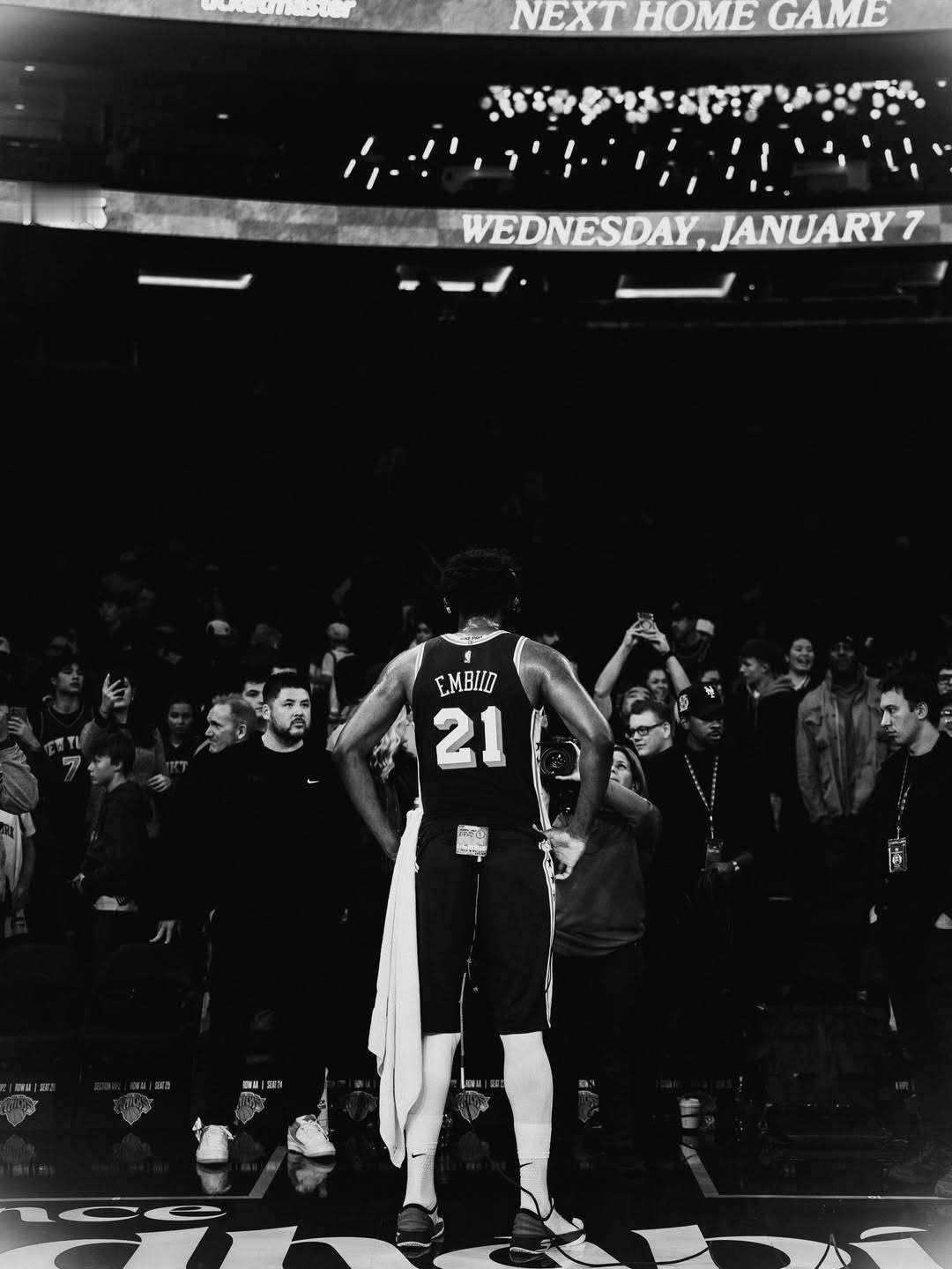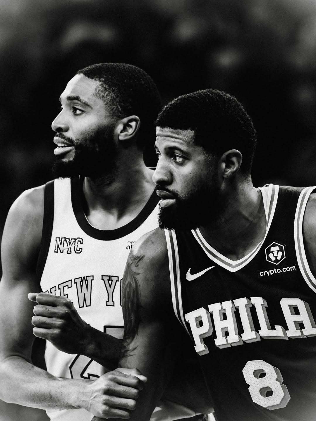 赛事图集!黑白滤镜!费城76人官方分享一组昨日对阵尼克斯队比赛时拍摄的球员现场酷图!费城76人冬日热情篮不住PaulGeorge保罗乔治
