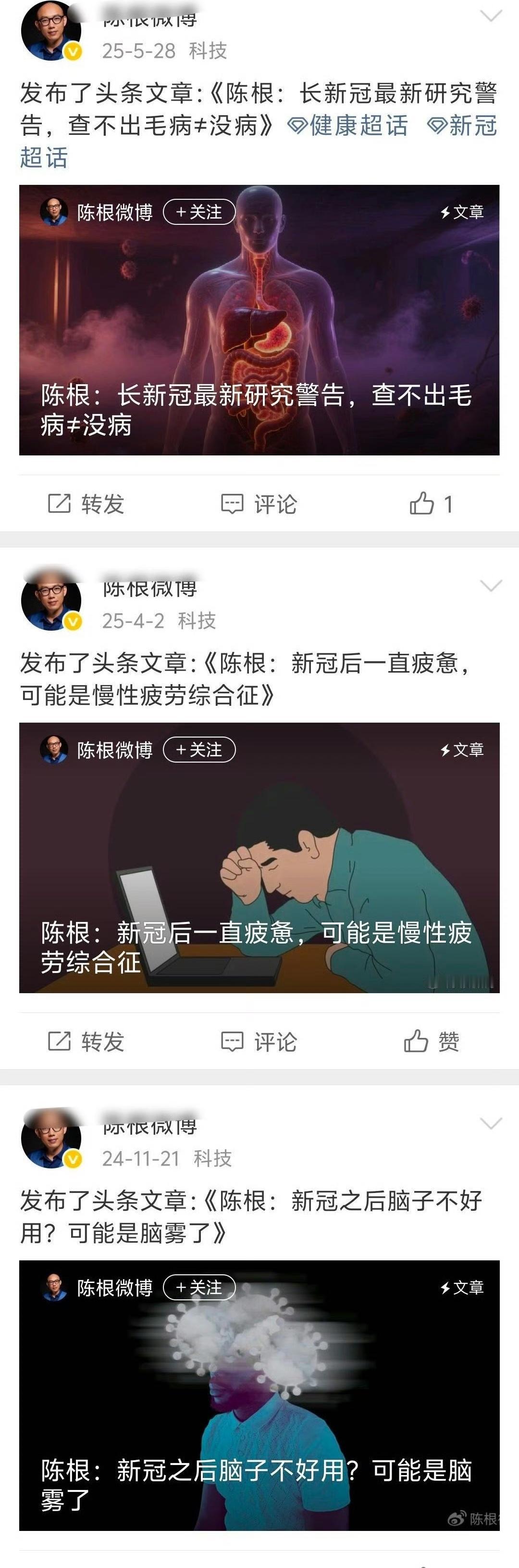 2022年,否认后遗症。 2025年,开始科普后遗症。 这很不好,对事物的发展有认识有盲区,很正常,但是,一个人自己对不清楚或还不明朗的事物的结论判断,应该要慎重,再不济,至少要做到观点前后一致吧?