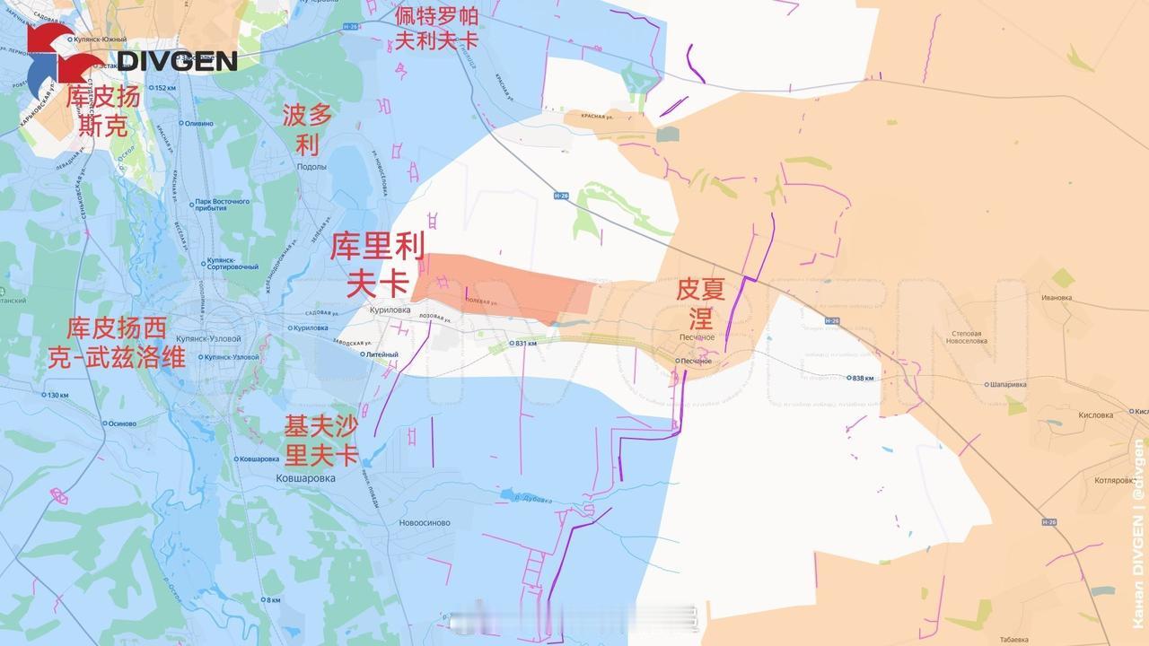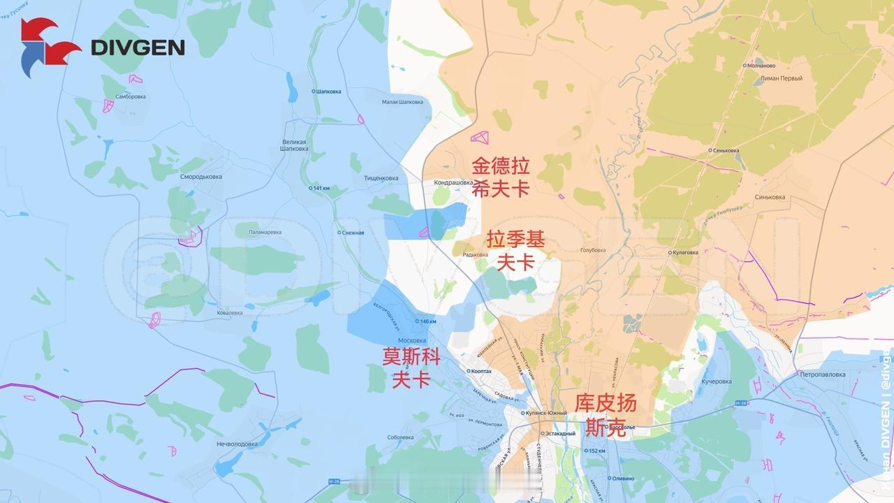 1月5日箭头社更新俄乌战报: 图一:俄罗斯中央军区的突击部队正在第聂伯罗彼得罗夫斯克州菲利亚以北的高地推进。 图二:俄军在库皮扬斯克方向的库里利夫卡村北部占据了新阵地。 图三:目前,库皮扬斯克市局势已趋于稳定。由于发动进攻的资源耗尽,乌军的攻势节奏明显放缓。目前,该市北部地区的战斗更为激烈。乌军突入了金德拉希夫卡村。据目前掌握的信息,该村的控制权大致处于平分状态,南部由乌军控制,北部则由俄军控制。 图四:俄罗斯北部集群在哈尔科夫州德沃里昌斯克村以南地区占据了新阵地。 图五、图六:俄军在顿河君士坦丁罗夫卡市内及其以南占据了新阵地。