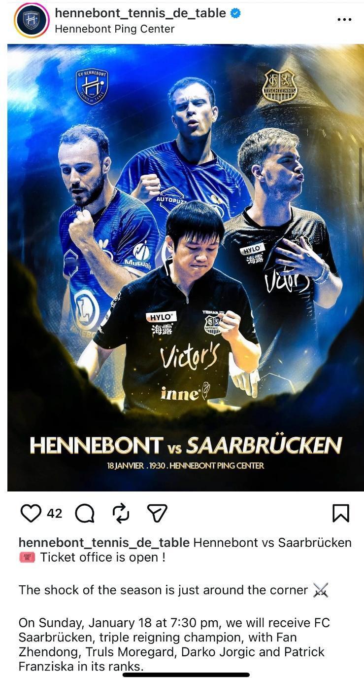 1月18日欧冠开票啦——樊振东 莫雷加德参加 1月18日樊振东在法国打欧冠客场, 虽然很好, 但还是希望东哥出现在亚洲杯的 参赛名单中, 欧冠去法国打客场, 樊振东,莫雷加德,达科,弗朗西斯卡,阵容真的太强大, 客场估计会有避战队员, 我现在能理解为什么欧洲的 乒乓球联赛办的那么好, 发展的那么快了, 尤其是德国, 因为他们完全套的足球那一套 成熟体系, 德甲联赛,德国杯, 欧冠联赛!