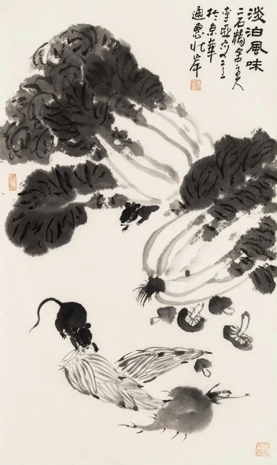 李亚笔下的“布衣暖,菜根香”:笔墨里的人间真味 🍃 李亚画这“布衣暖,菜根香”,没有浓墨重彩,却把日子的淡滋味画透了。 画面里或许是柴门半掩,穿粗布衣裳的老者倚着竹椅,手里捏着本旧书,阳光透过疏竹洒在衣上,暖得像刚晒过的棉絮——那“布衣暖”,是熨帖在身上的踏实,不用绫罗绸缎,也自有安稳。 案头摆着青瓷碗,盛着简单的菜蔬,旁边一小碟酱菜,墨色淡得像带点土气,却透着清冽的香。他不画珍馐,偏把萝卜、青菜画得有滋有味,叶脉用细笔勾出,带着晨露的润,仿佛能闻见灶台上飘来的烟火气——这“菜根香”,是嚼得出的本真,比山珍海味更耐品。 题字“淡泊滋味长”落在角落,笔锋温润,像老者慢悠悠的话。整幅画没有喧嚣,只有柴门、布衣、菜根,却把日子的从容画活了:原来最长久的滋味,从不是浓烈的甜或咸,而是平淡里藏着的暖,像老茶泡在粗瓷杯里,越品越有回甘。