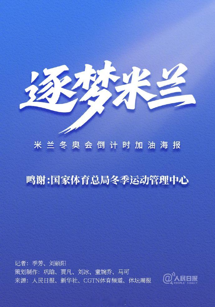 中国冰雪逐梦米兰加油海报距离米兰冬奥会还有一个月 米兰冬奥还有1个月开幕!中国冰雪健儿已进入备赛冲刺阶段。来看谷爱凌等中国冰雪健儿的逐梦关键词!一起为冰雪健儿加油!