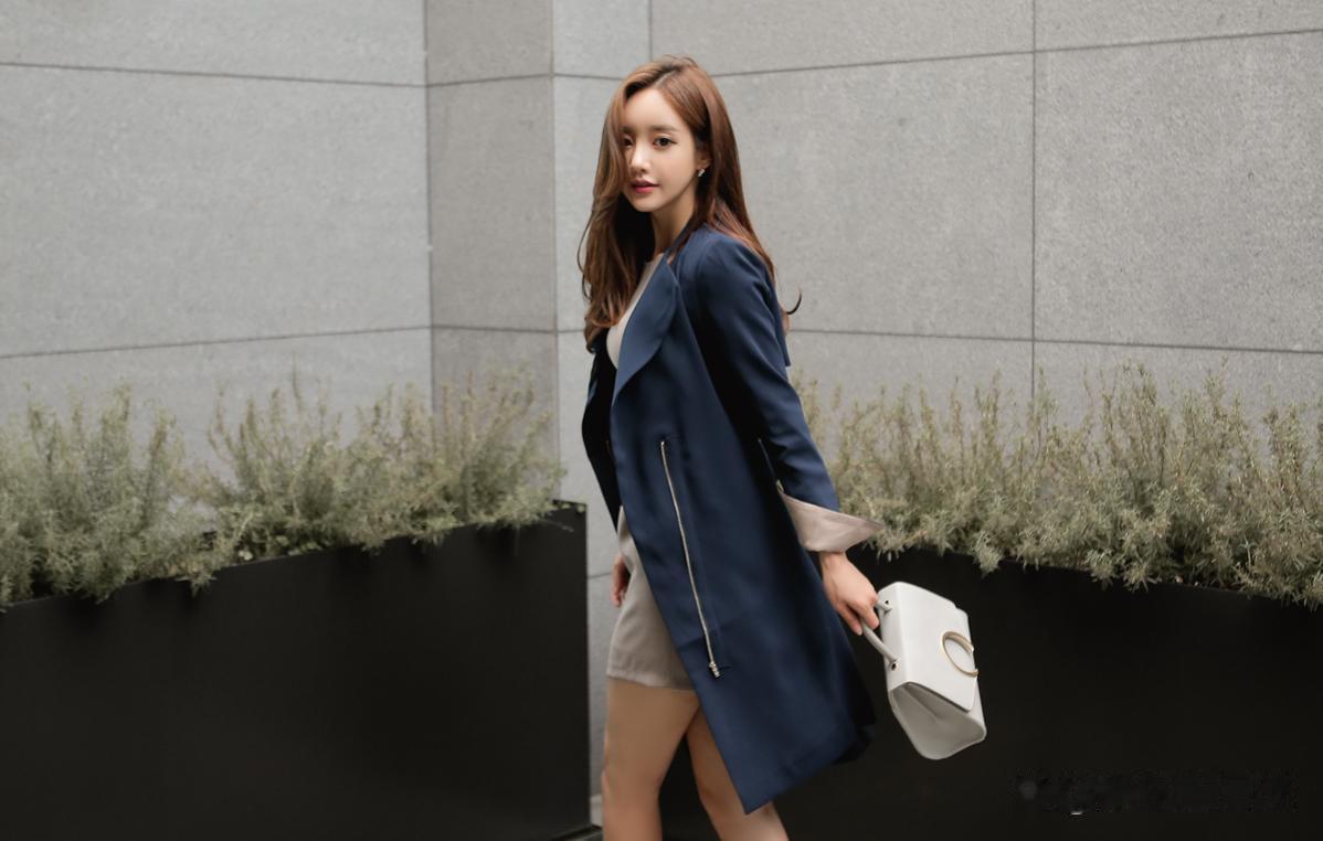 孙允珠在职场中自信满满的穿搭,一件修身的浅灰色连衣裙,完美勾勒出她曼妙的身材曲线,低调又不失优雅。外面披着一件深蓝色的中长款西装外套,瞬间增添了几分干练与气场。 一双拼色高跟鞋太吸睛了!灰色与黑色的巧妙拼接,既拉长了腿部线条,又增添了时尚感。身旁的手提包也是点睛之笔,经典的黑色配上个性的金属环装饰,简约又高级,无论是洽谈业务还是日常办公,都能轻松适配。