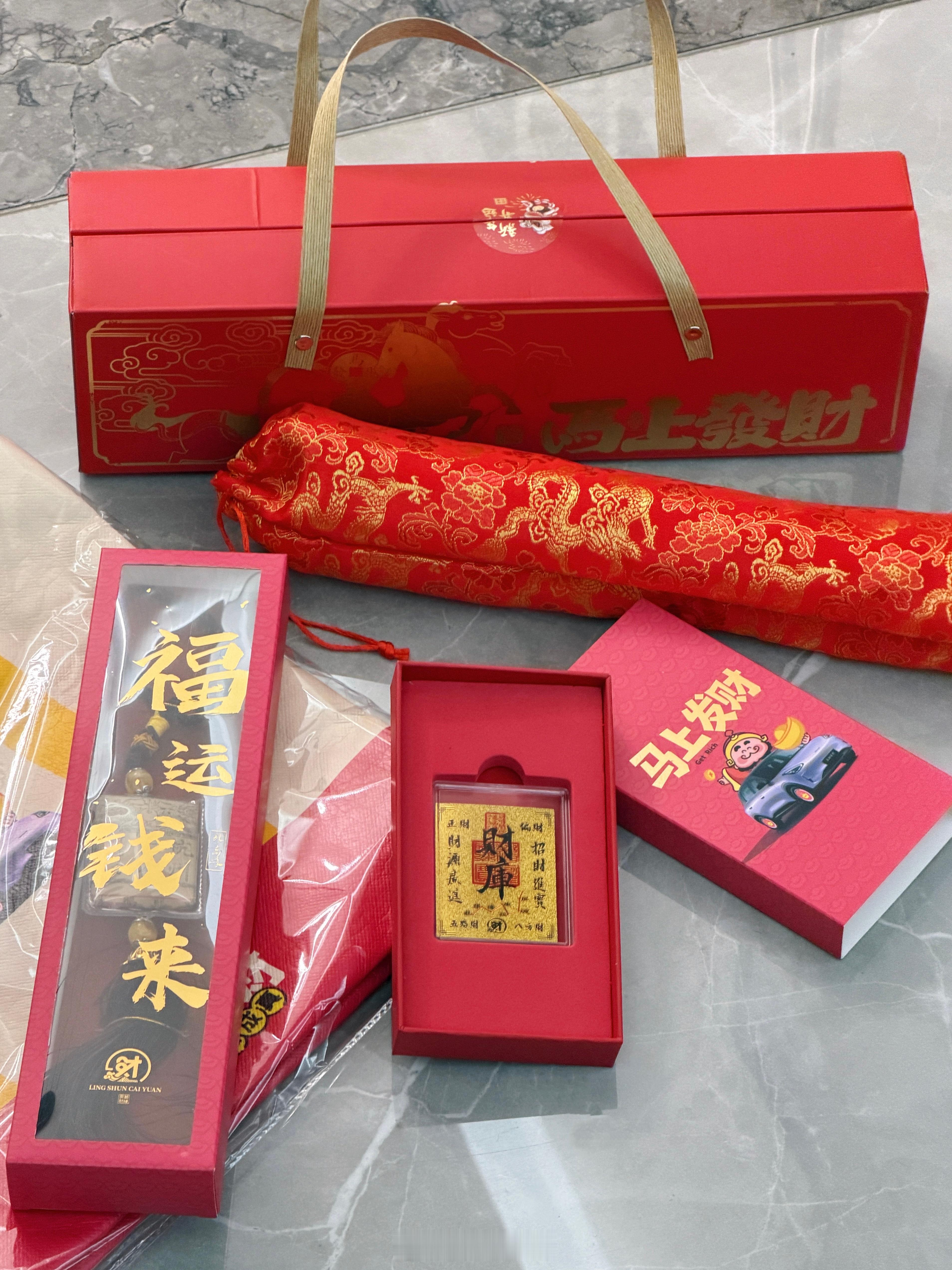 早安好朋友们收到了吉利星愿寄来的新年大礼包是和天下第一财神庙的联名,有挂件、金卡、年历、春联…年味很足 一整套都送给你们点赞就行!祝大家新年星愿成真马上发财 抽奖详情