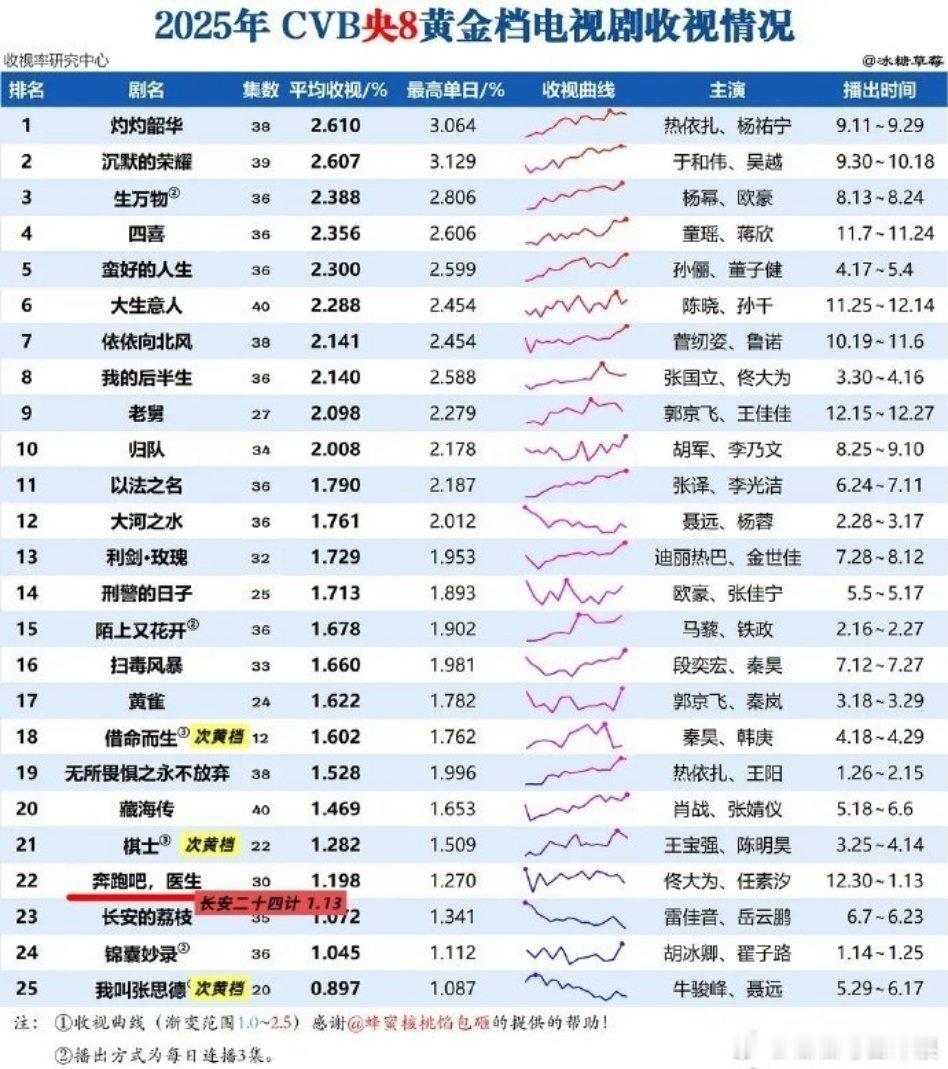成毅主演的长安二十四计官方出了cvb收视日历,平均1.13%。在央8次黄破1,总榜2025年收视正数第三,古装正数第一,这成绩是不是非常好?
