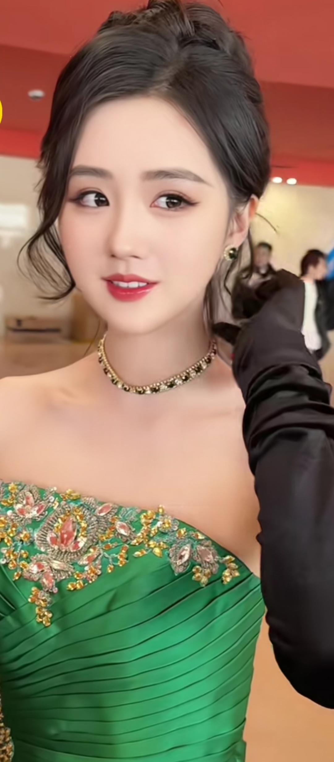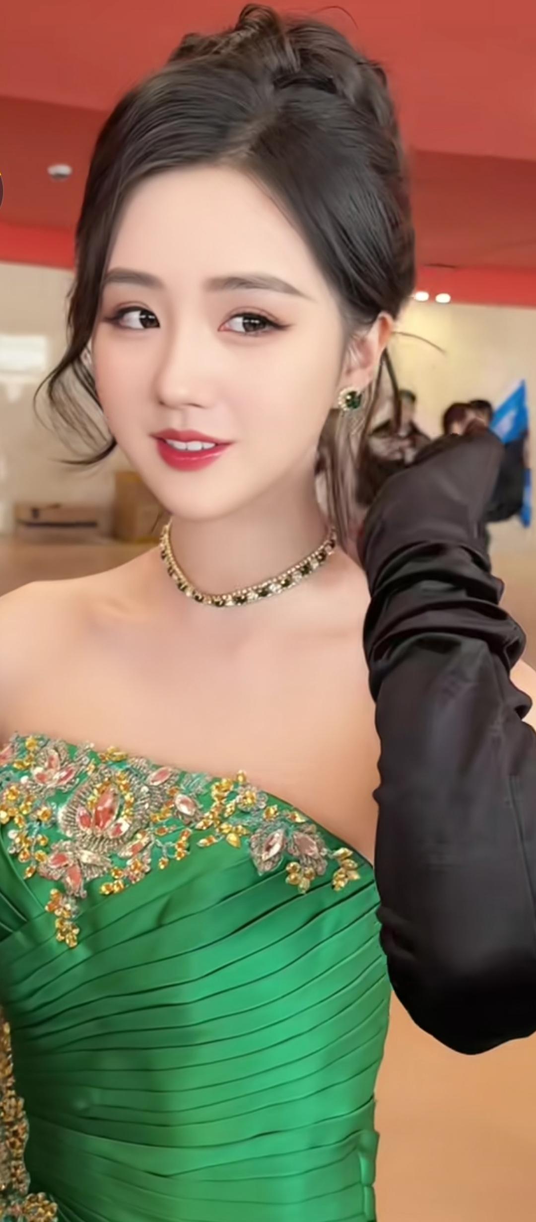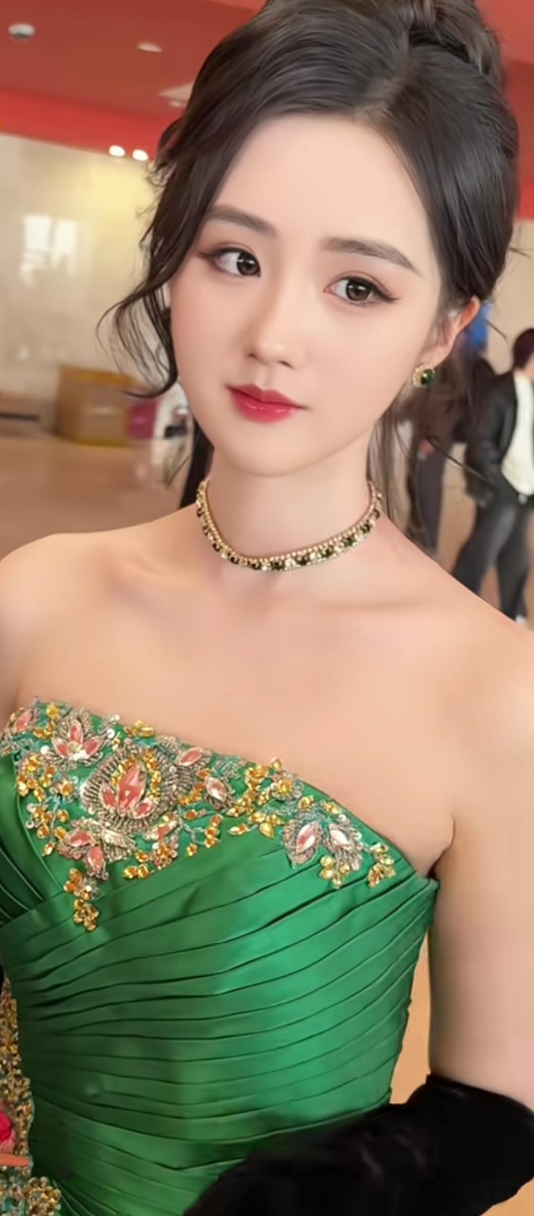 优雅绿裙晚宴,闪耀珠宝配饰,红唇点睛,尽显迷人魅力!💃💎🌹
