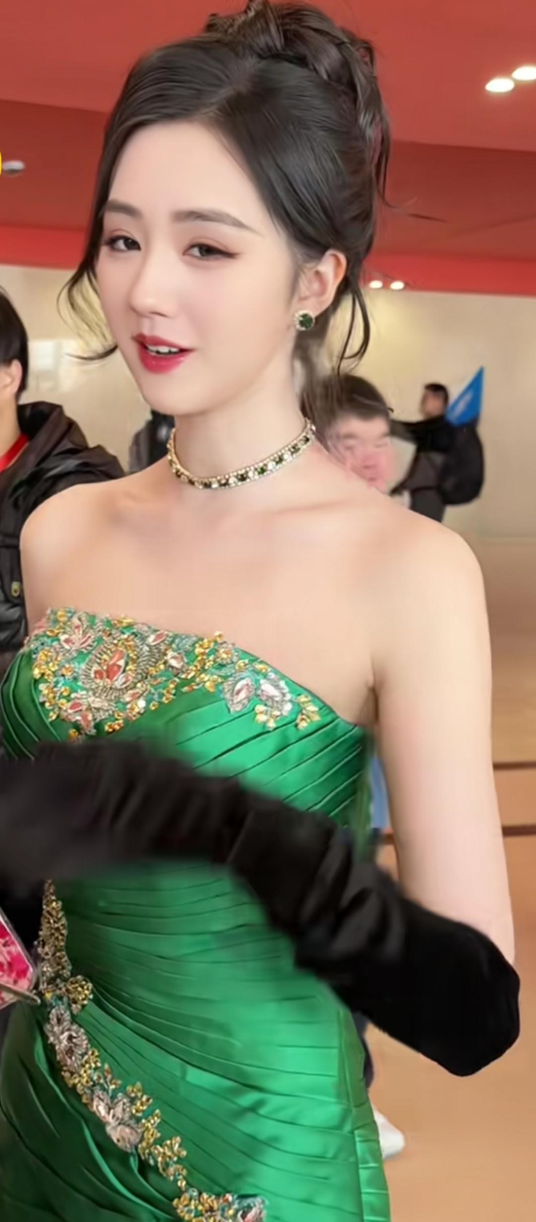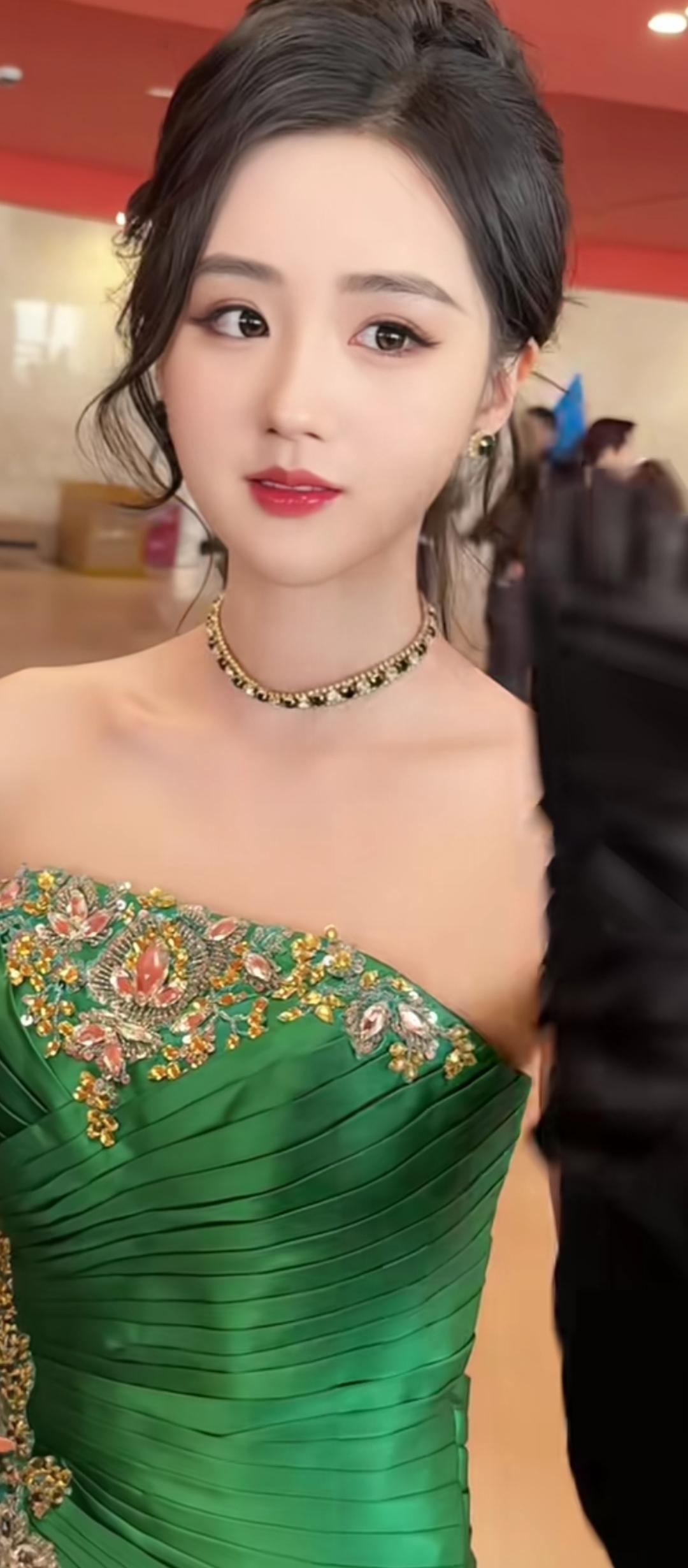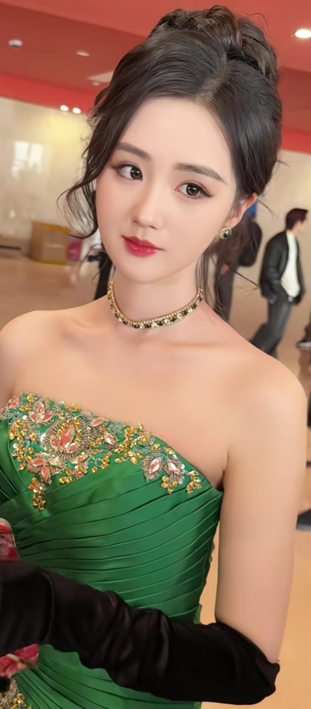 优雅绿裙晚宴,闪耀珠宝配饰,红唇点睛,尽显迷人魅力!💃💎🌹