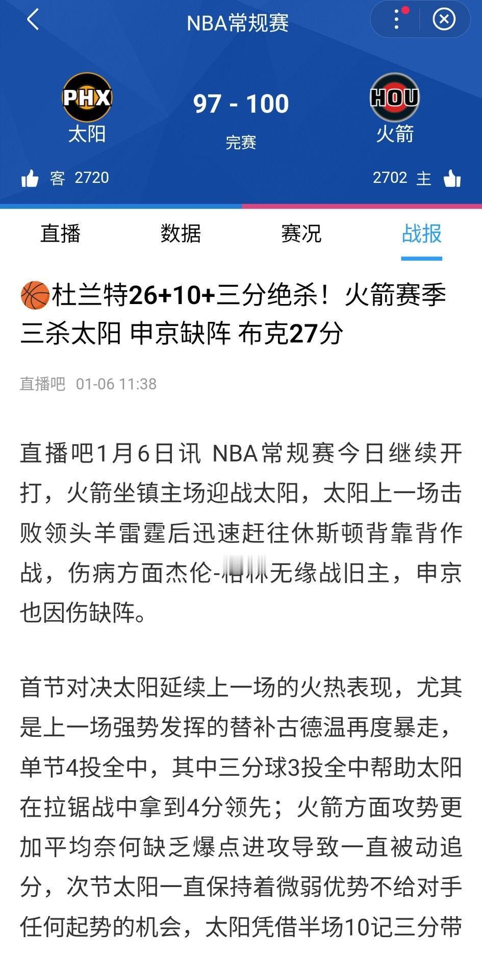 年度最佳笑话:三队打不过一队!残阵掘金125-124绝杀76人。 12投1中怕啥,杜兰特三分绝杀太阳。 掘金火箭赢球,胜率追平湖人。