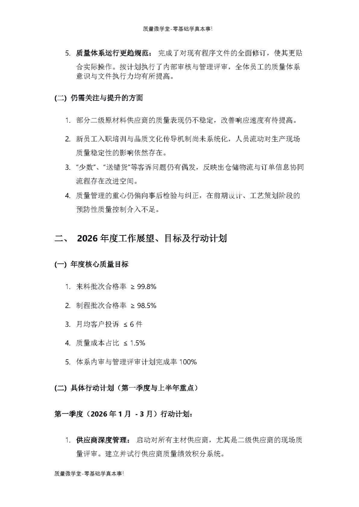 品质部年终总结及2026年工作规划word每日思考 每天跟我涨知识 每天学习一点