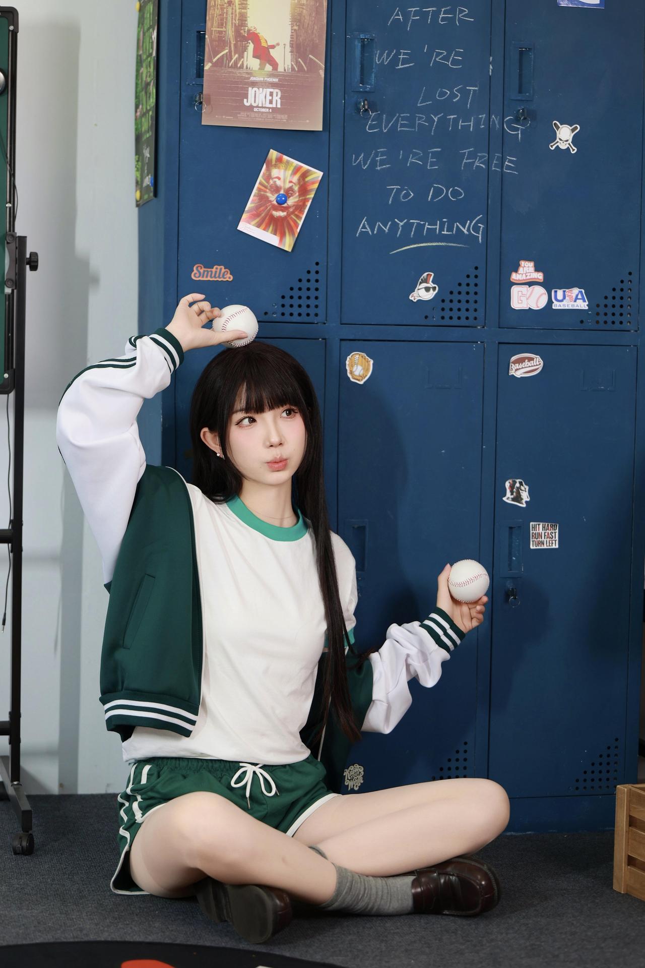 青春洋溢的校园风,绿白相间的运动服,少女心满满!