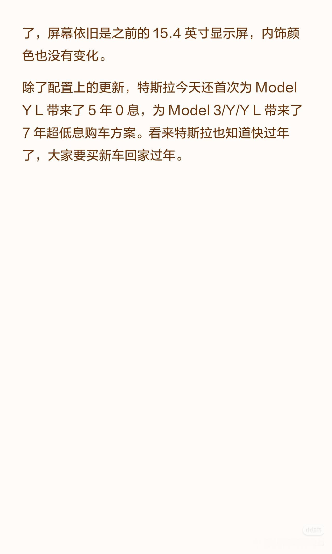特斯拉这波“7年超低息”,与其说是让利,不如说是把消费者绑在还款链上的慢性收割——年化0.98%的利息看似微薄,却要你用人生宝贵的7年买单,叠加房贷、装修贷的重压,这哪里是买车,分明是给未来7年套上“移动枷锁”。 别被“月供1918元”的数字忽悠了,这压根不是降价,是换汤不换药的营销套路!且不说2024-2025年本就有新能源购置税免征政策(最高免3万),特斯拉压根没把这份政策红利转化为终端让利,反而用金融方案掩盖不降价的本质 。更讽刺的是,韩国市场直接狂降6万,Model Y折合人民币仅24万出头,而中国作为特斯拉最大生产基地(上海工厂国产化率95%),成本更低却卖26万+,主产区卖得比海外贵,这不是把中国消费者当冤大头宰是什么? 再谈产品力,特斯拉早就没了当年的优势。同价位里,深蓝S07纯电续航215km起、满油满电超1280km,小鹏G6最高续航755km,而Model Y后驱版才593km,续航连国产二线都拼不过;智驾方面,国产车型入门就标配高速NOA、智能泊车,特斯拉FSD不仅要额外付费,本土化调校还频频掉链,连复杂路况都应对不了 ;至于内饰配置,“彩电冰箱大沙发”咱就不奢求了,特斯拉连基础的座椅加热、氛围灯都要选装,内饰简配到像“毛坯房”,这哪是豪华品牌该有的诚意? 特斯拉明明握着成本优势,却不愿像韩国市场那样实打实降价,反而用“7年捆绑”的金融套路敷衍消费者。当国产车企把智驾、续航、配置卷到天花板,特斯拉还抱着“品牌滤镜”啃老本——不降价、不兜底、产品力掉队,这样的特斯拉,凭什么让消费者掏真金白银买单?