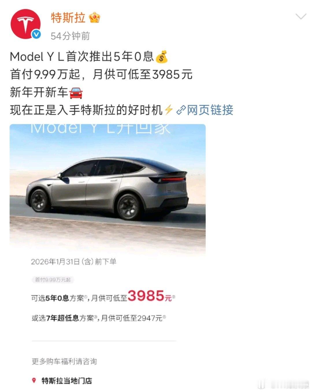 特斯拉大家并没有等来特斯拉降价,特斯拉来了个7年超长低息和Model Y L 5年0息。