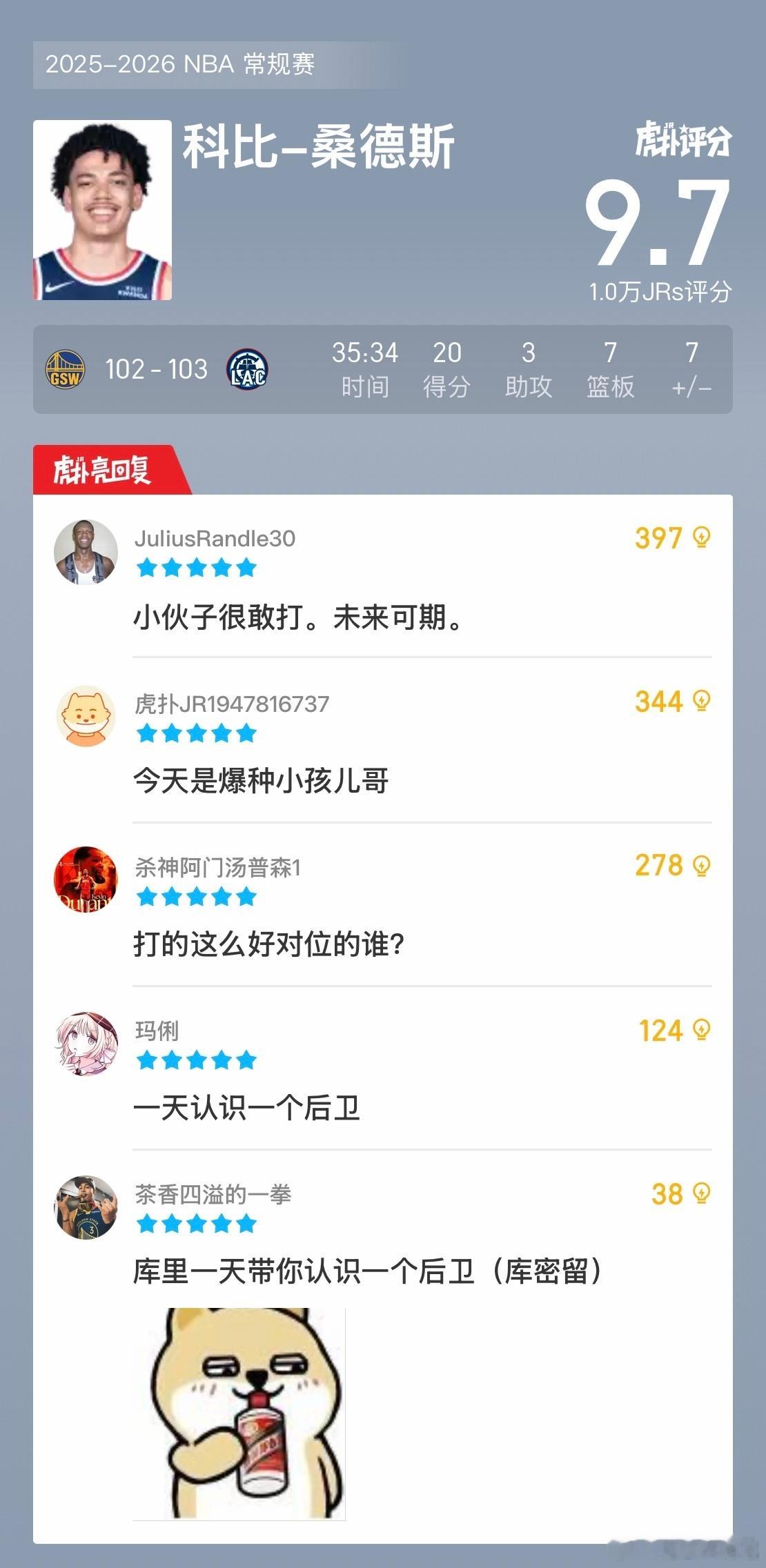 快船双向合同球员科比桑德斯,生涯6.1分,2.1篮板,1.4助攻。今天拿了生涯最高的20分,还有7篮板3助攻。请问,谁防的?