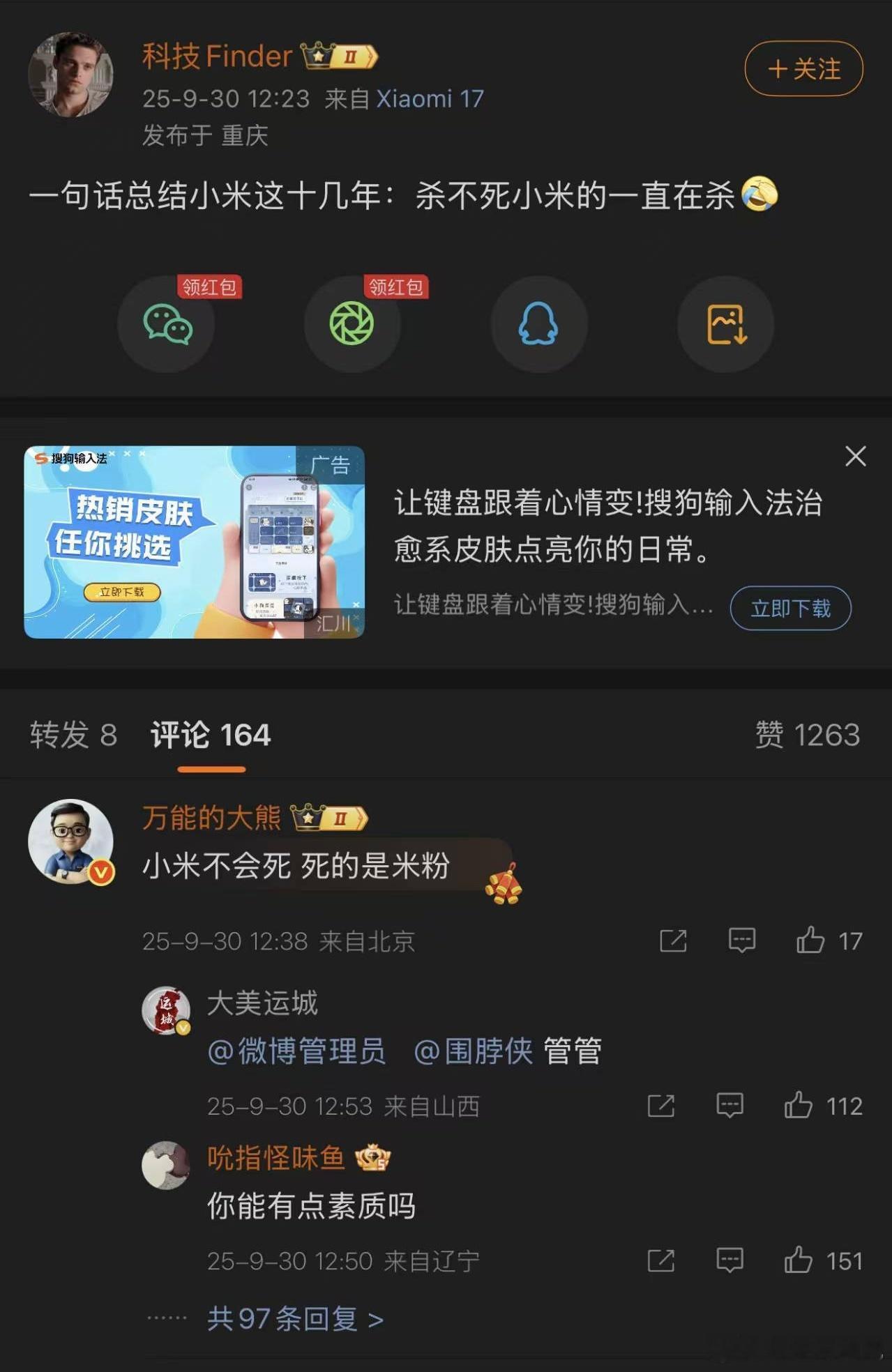 小米评论区彻底沦陷!雷军徐洁云遭米粉围攻,原因竟是广告投了“头号黑粉”